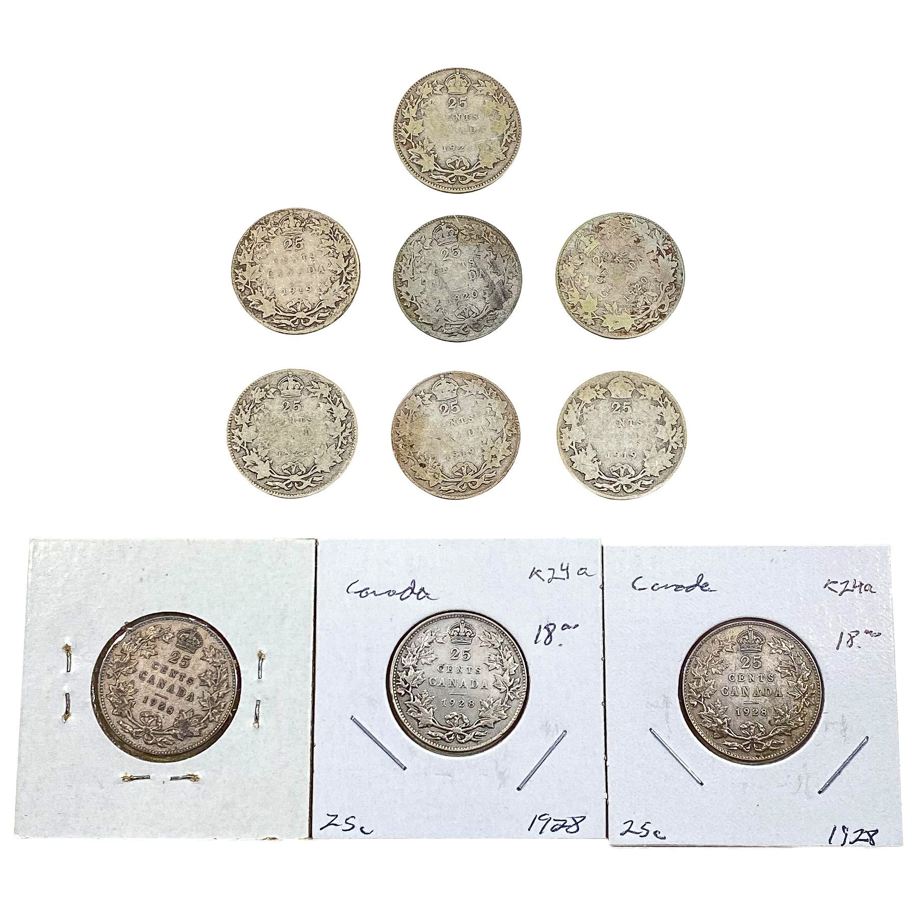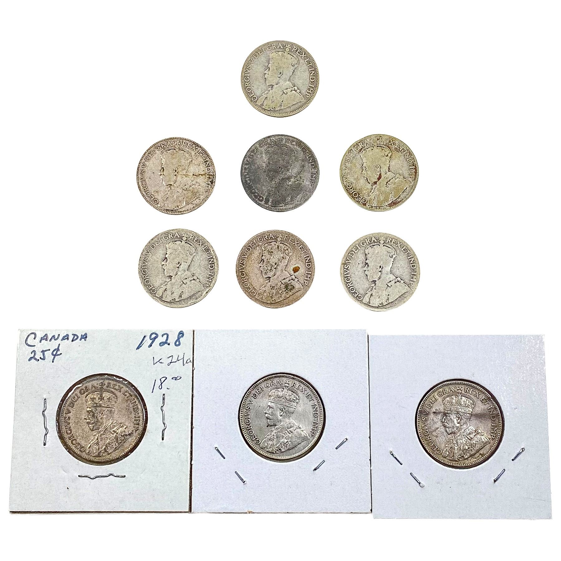 [10 Coins] 1919-1928 Silver Canada 25c HIGH GRADE
