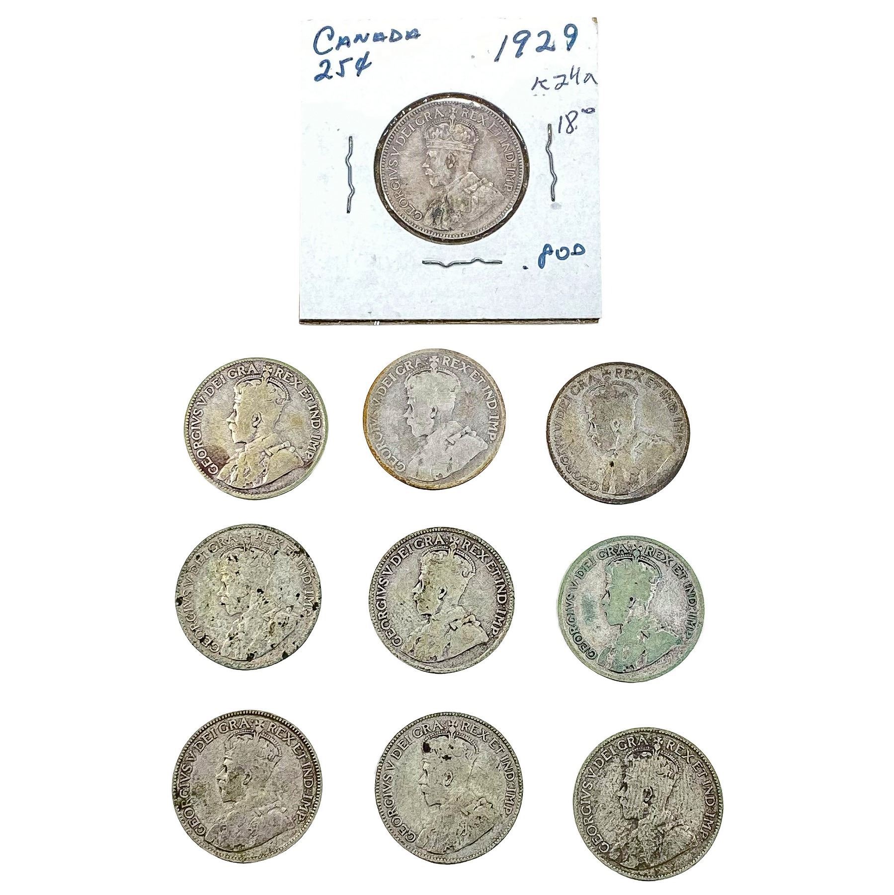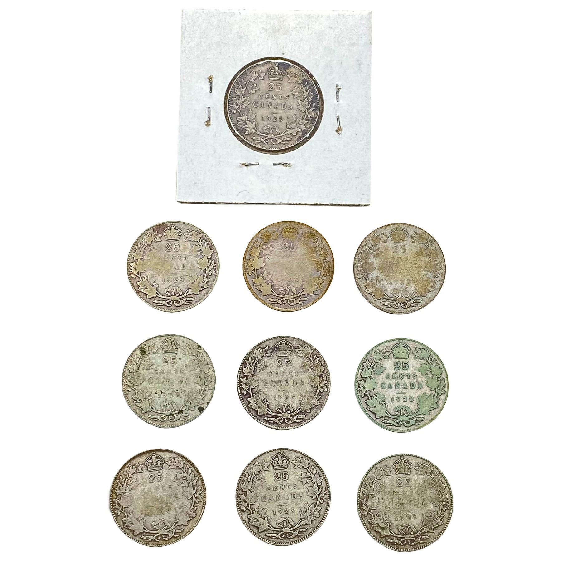 [10 Coins] 1929-1930 Silver Canada 25c HIGH GRADE