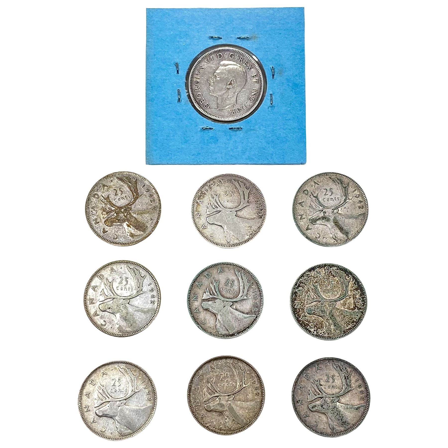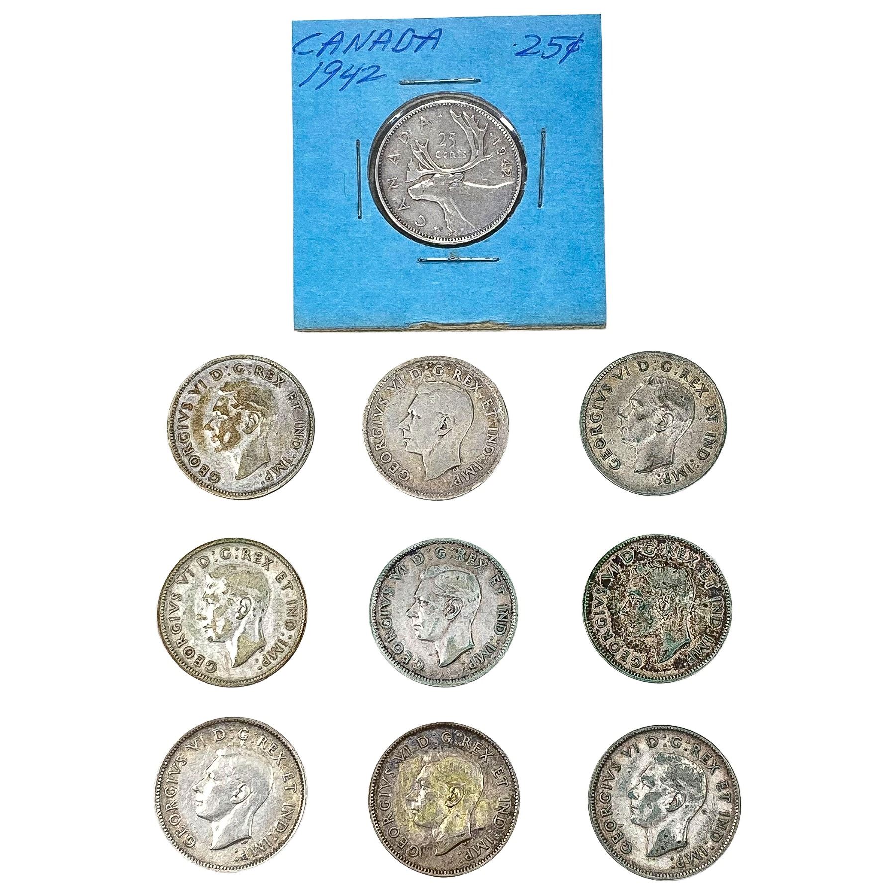 [10 Coins] 1942 Silver Canada 25c HIGH GRADE