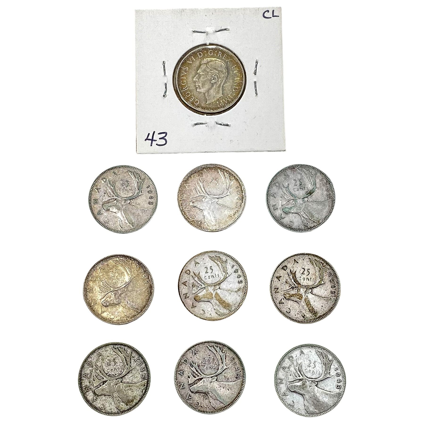 [10 Coins] 1943-1945 Silver Canada 25c HIGH GRADE