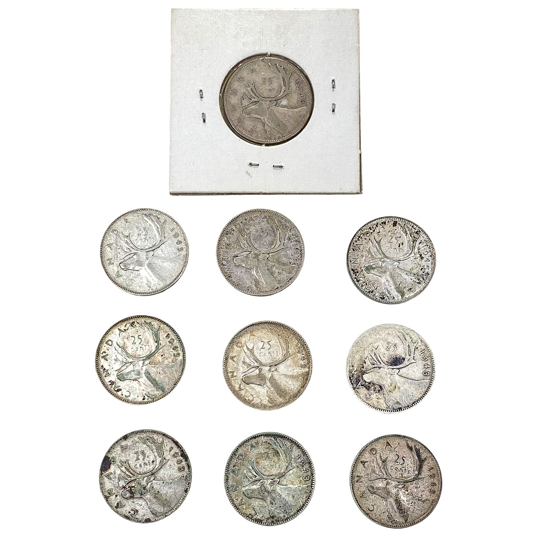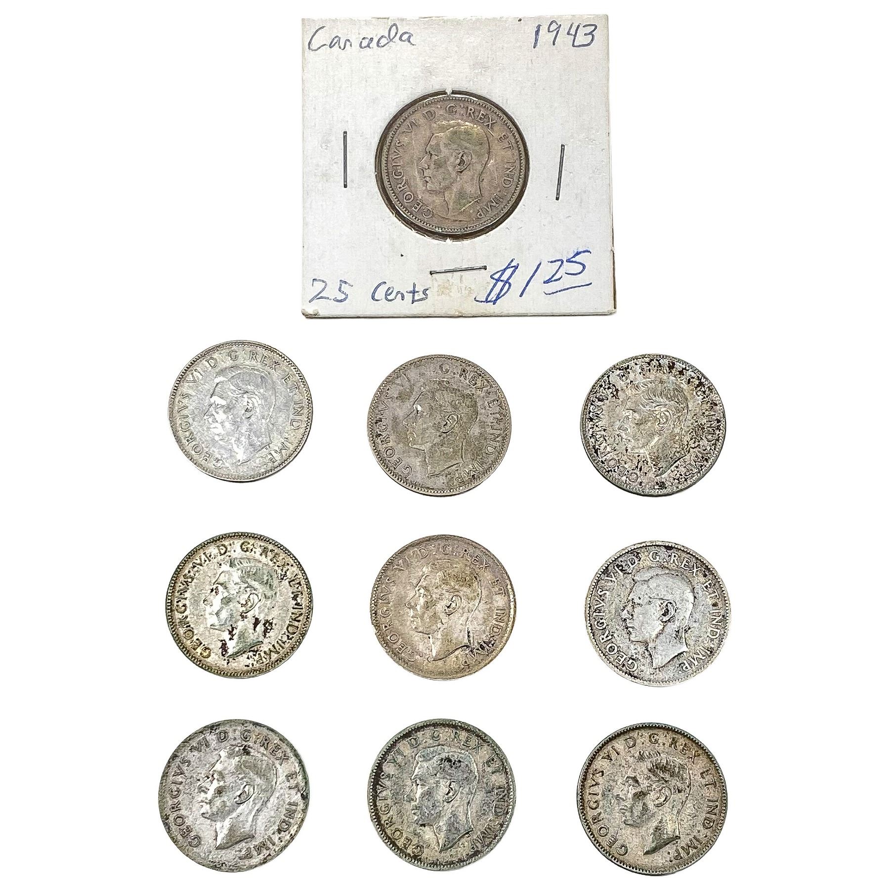 [10 Coins] 1943-1946 Silver Canada 25c HIGH GRADE