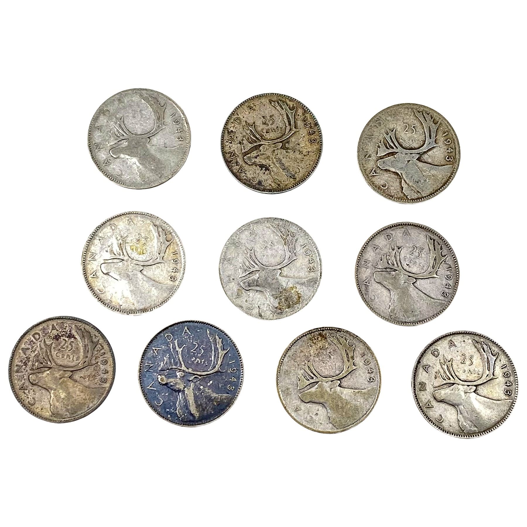 [10 Coins] 1943 Silver Canada 25c HIGH GRADE