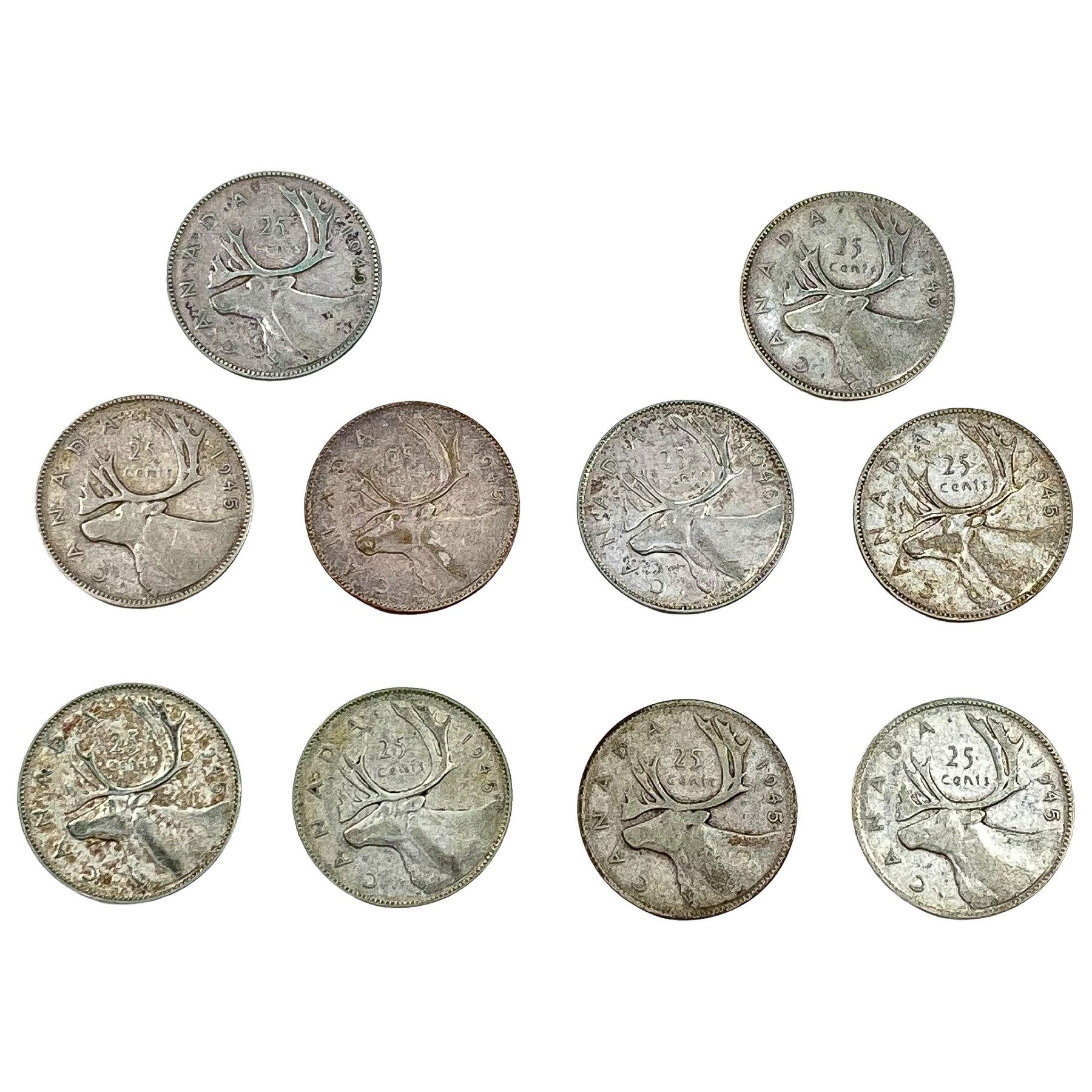 [10 Coins] 1945-1946 Silver Canada 25c HIGH GRADE
