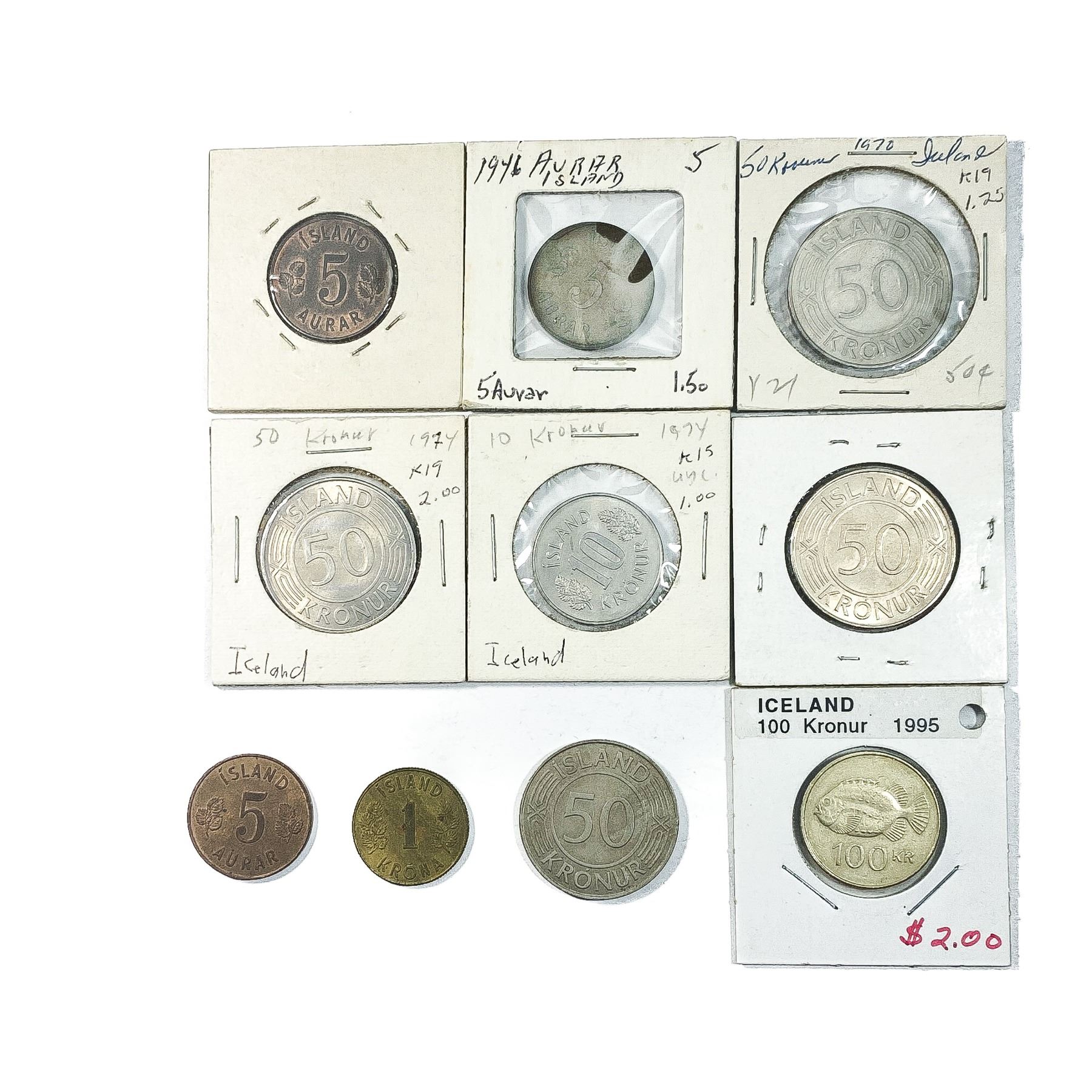 [10 Coins] 1946-1995 Iceland Coin Lot