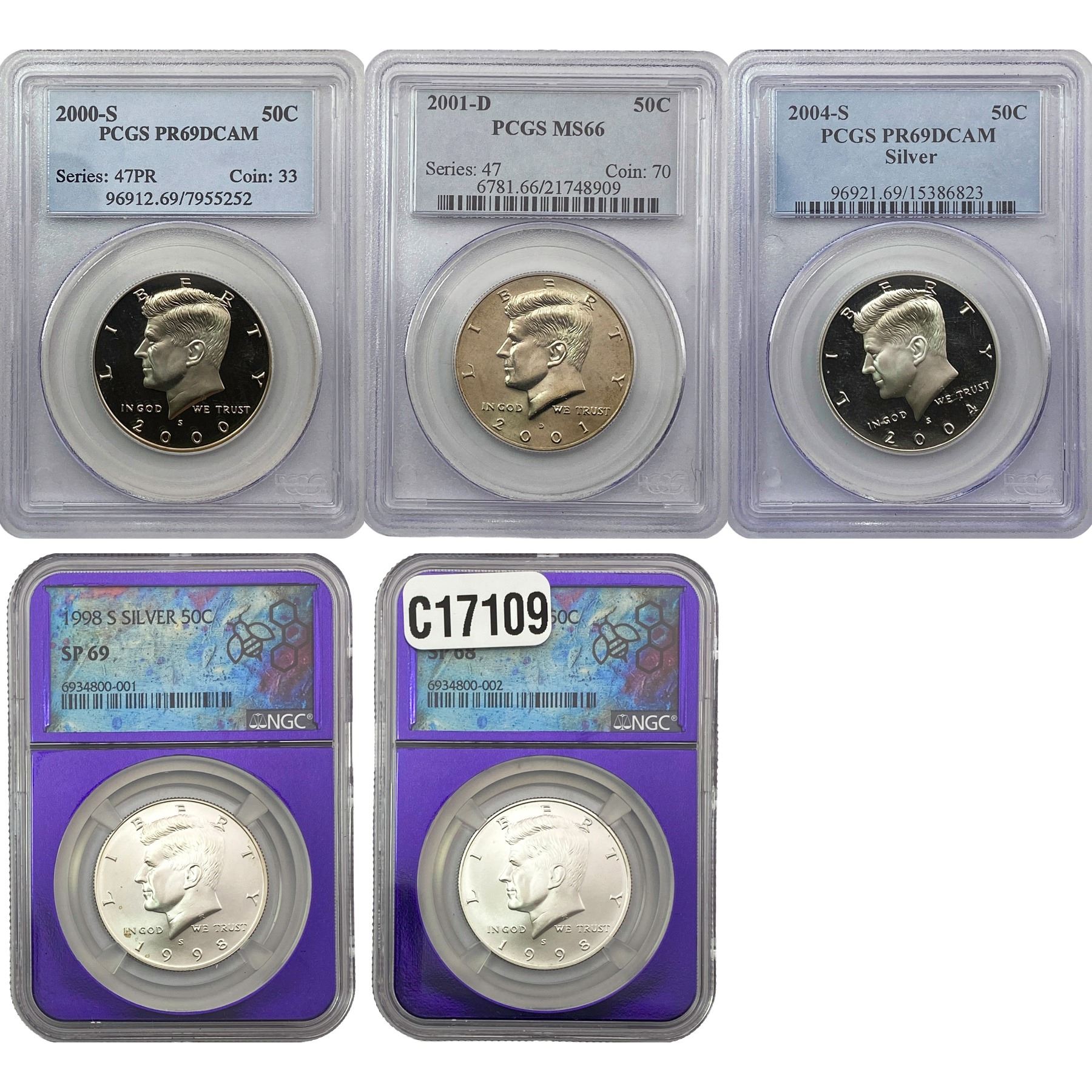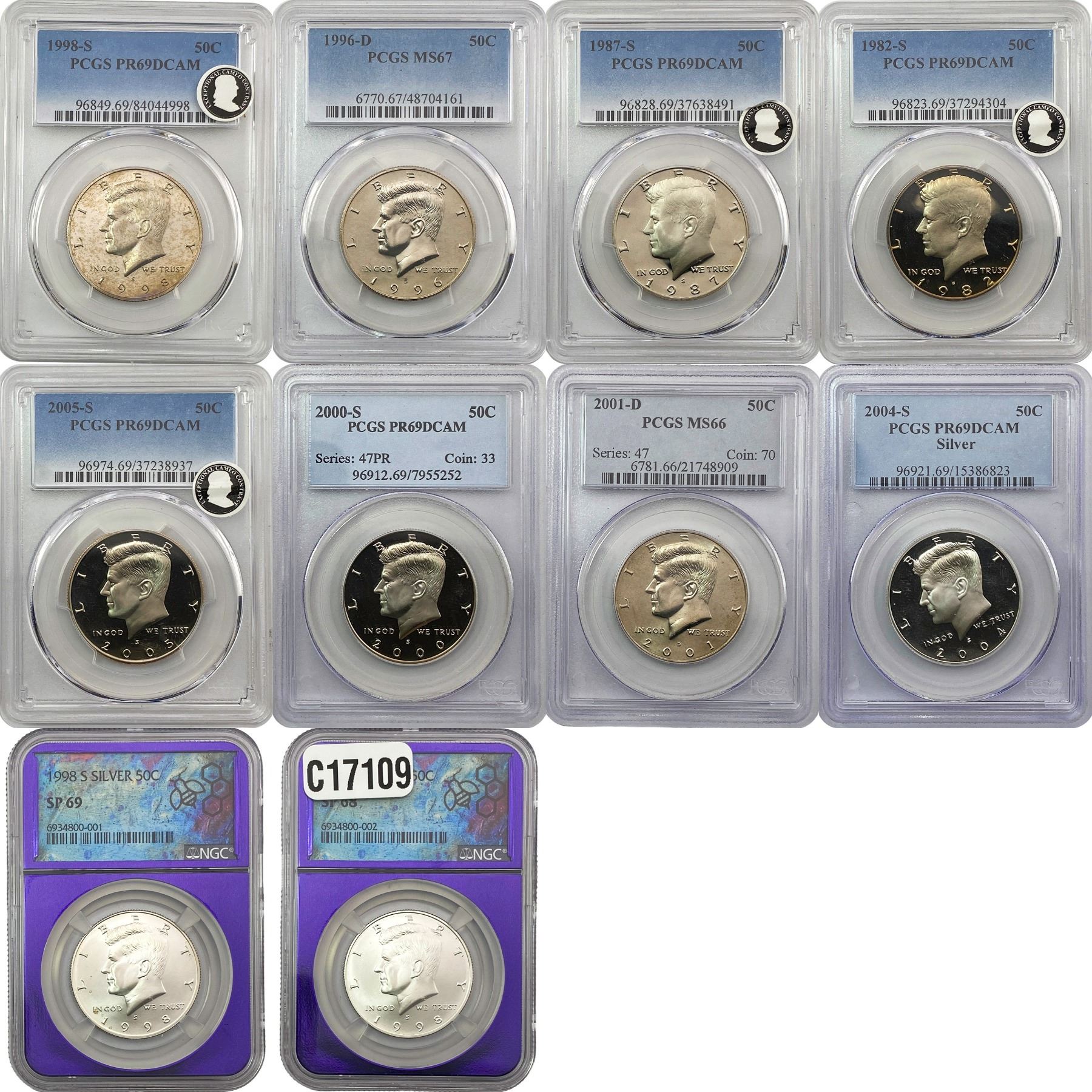 [10 Coins] 1982-2005 Kennedy Half Dollar PCGS/NGC SP/PR/MS66-69