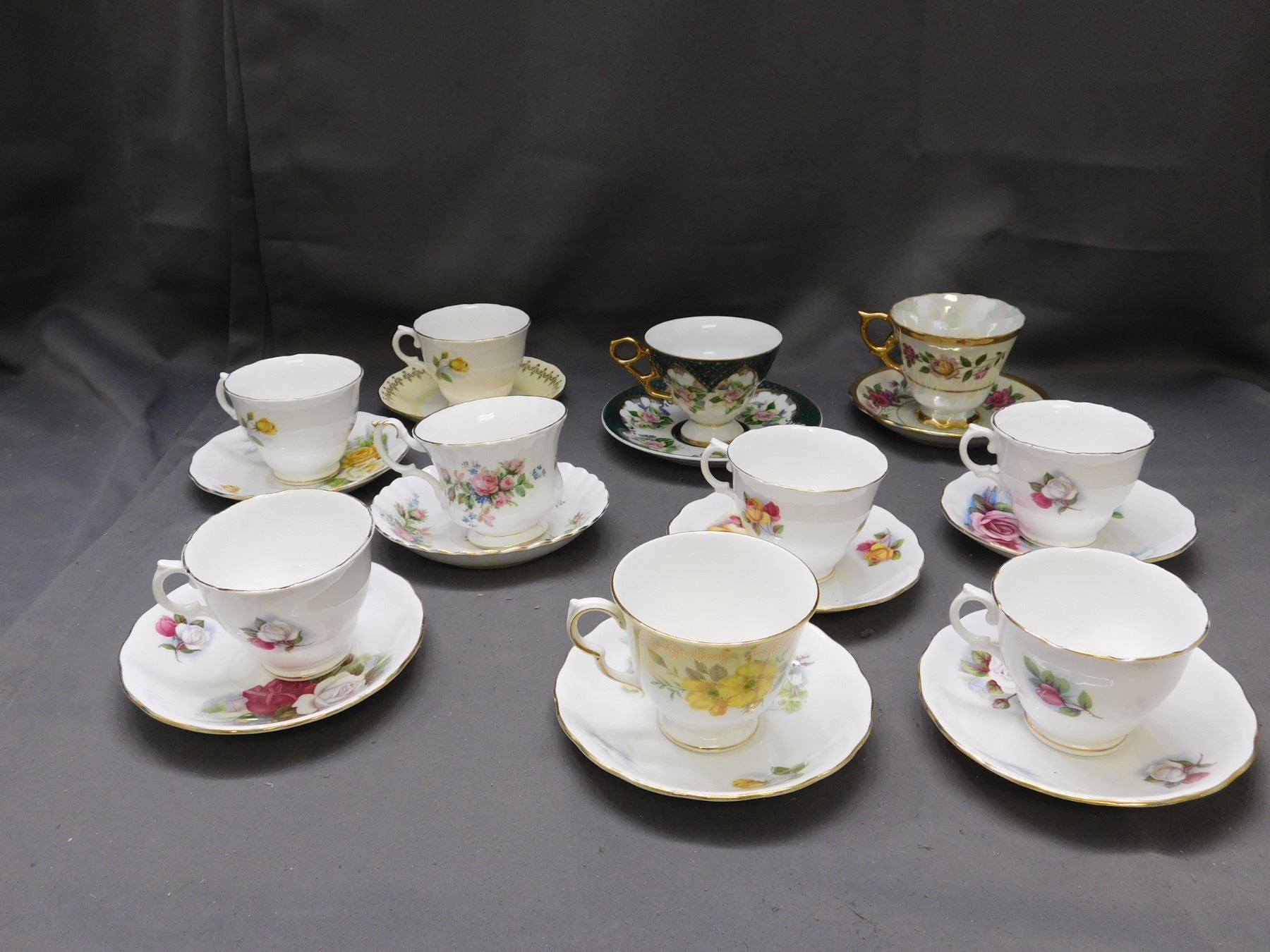 10 Cups and Saucers Royal Albert, Queen Anne, Royal Osborne, Shafford, etc