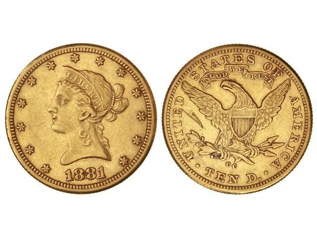10 Dólares. - 1881-C.C. - CARSON CITY. - AU. Coronet Head. (Rayas en reverso). KM-102. MBC+. - -