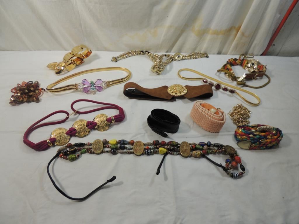 METAL, GOLDTONE, COLORFUL, BEADED, FASHION BELTS, DECORATIVE BELTS, DESIGNER BELTS, AS SHOWN SEE PHOTO FOR MORE DETAILS.