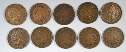 10 DIFFERENT INDIAN HEAD CENTS ( 00,01,02,03,04,05,06,07,08,09) VG-XF