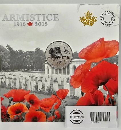 10 DOLLARS 2018 ARMISTICE FINE SILVER .999 CARDBOARD DAMAGE
