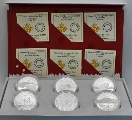 10 DOLLARS 2020 ENSEMBLE 6 PIECES O CANADA FINE SILVER .999