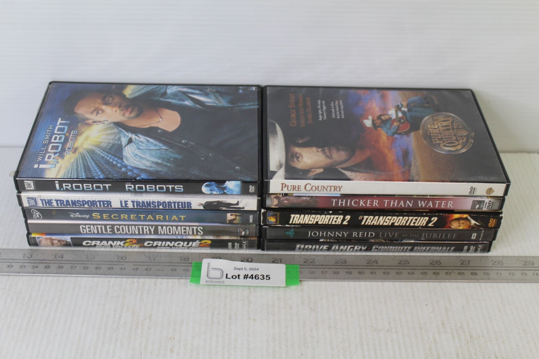 (10) DVDs - Crank 2 - Pure Country - Drive Angry - I, Robot - Transporter - Secretariat