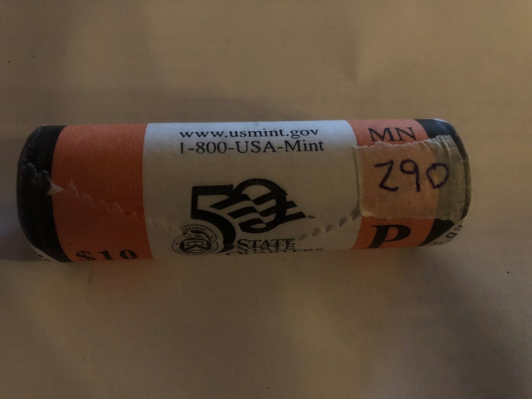 10 Dollar US Mint Roll Minnisota P State Quarters