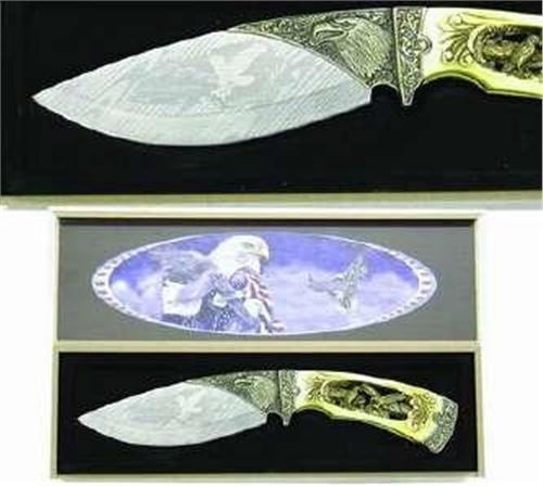 Blade Length: 5" Eagle Scene etched on both sides of the Blade