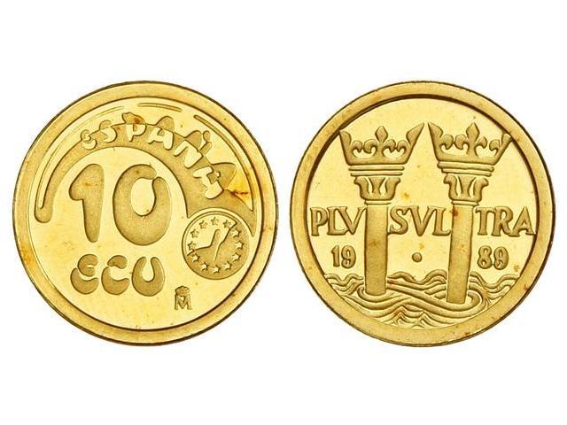 10 Ecu. 1989. AU. PLV-SVL-TRA. Anverso y reverso no coincidentes. Tipo moneda. FDC.