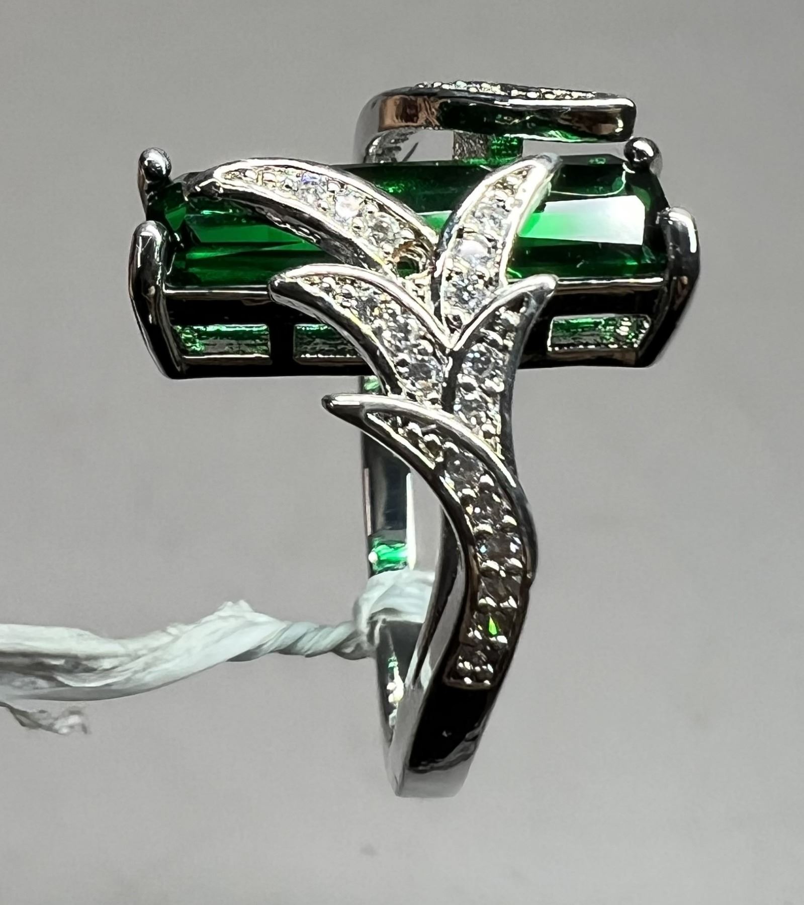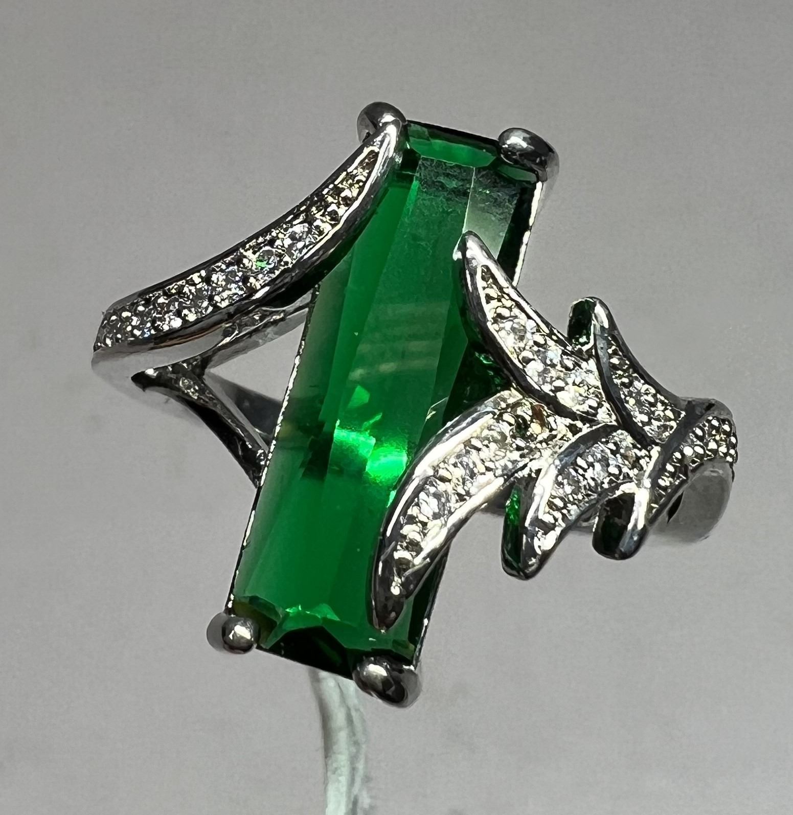 10. Emerald, Lab Created, Claw Set, S925 Overlay, Size 9.5