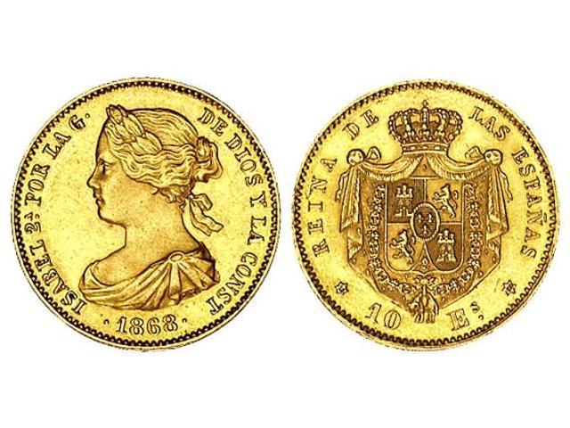 10 Escudos. - - 1868 (*18-68). - - MADRID. - - Cal-47. EBC-. - -