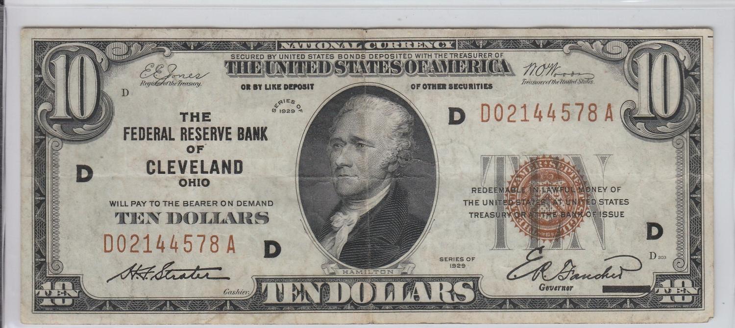 $10 FRBN CLEVELAND 1929 BROWN SEAL