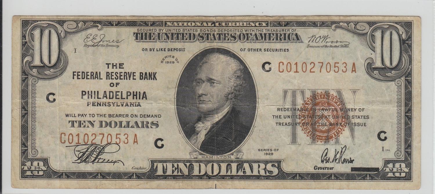 $10 FRBN **PHILADELPHIA** 1929 BROWN SEAL