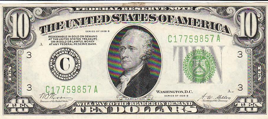$10 FRN REDEEMABLE IN GOLD 1928 BOLD APPEAL