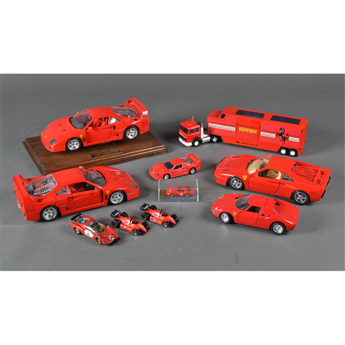 To include various models to include a Ferrari transport, makers to Piccolino, Vurago, and Corgi. Largest is 12"L circa 20th century. Private collection St. Claire Shores, MI