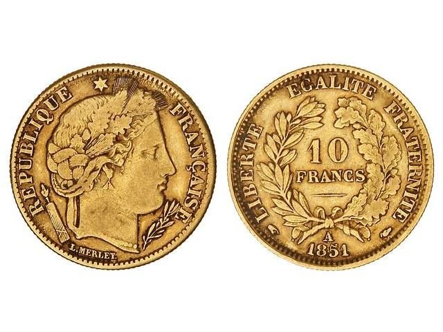 10 Francos. 1851-A. II REPÚBLICA. PARÍS. AU. KM-770. MBC-.