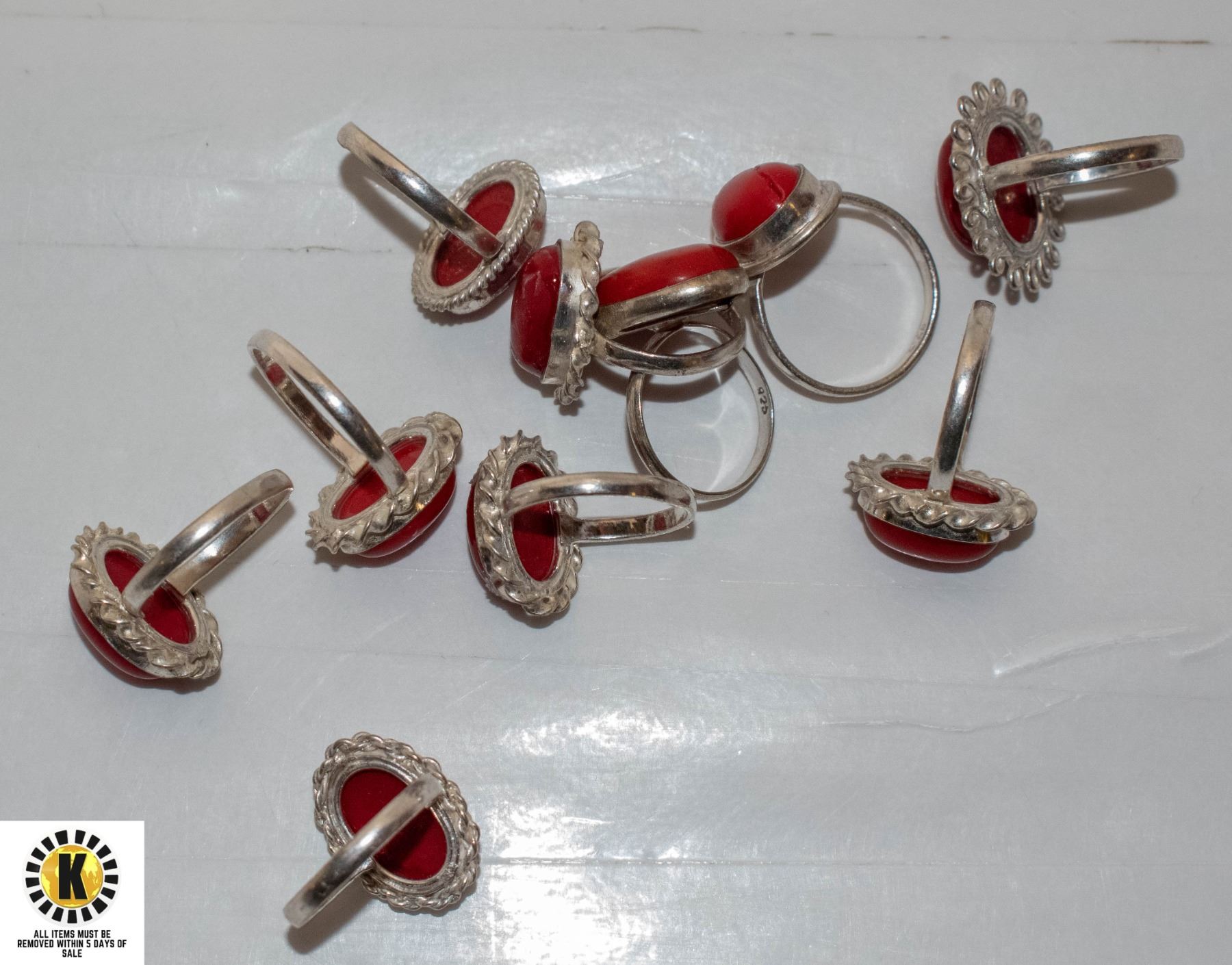 10 GEMSTONE CORAL 925 SILVER PLATED RINGSÿ