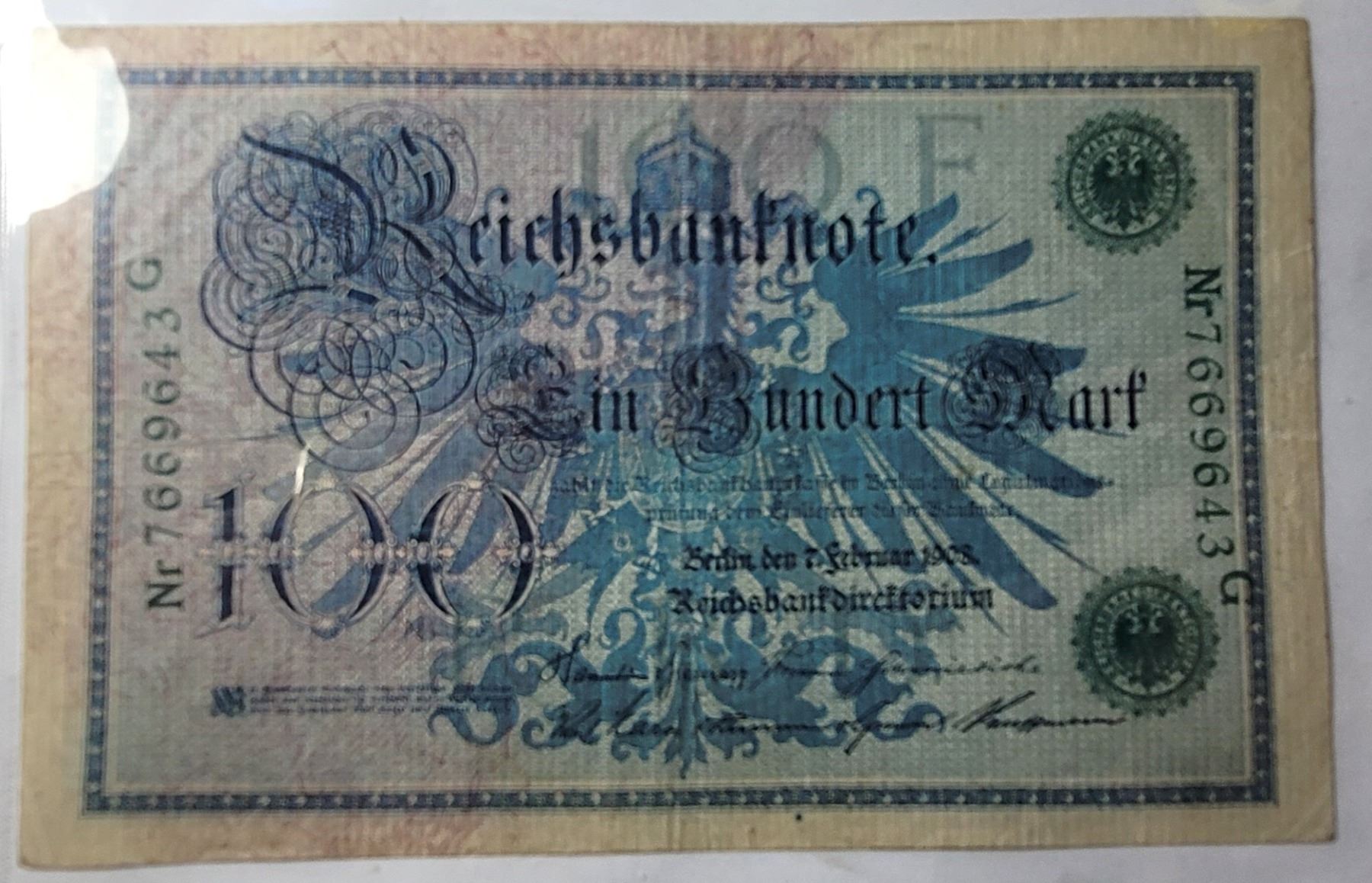 10) GERMAN 1909 (PRE WWI) 100 MARK BANKNOTE