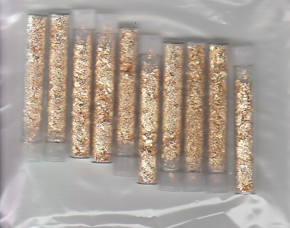 10 GLASS VIALS OF GOLD FLAKE