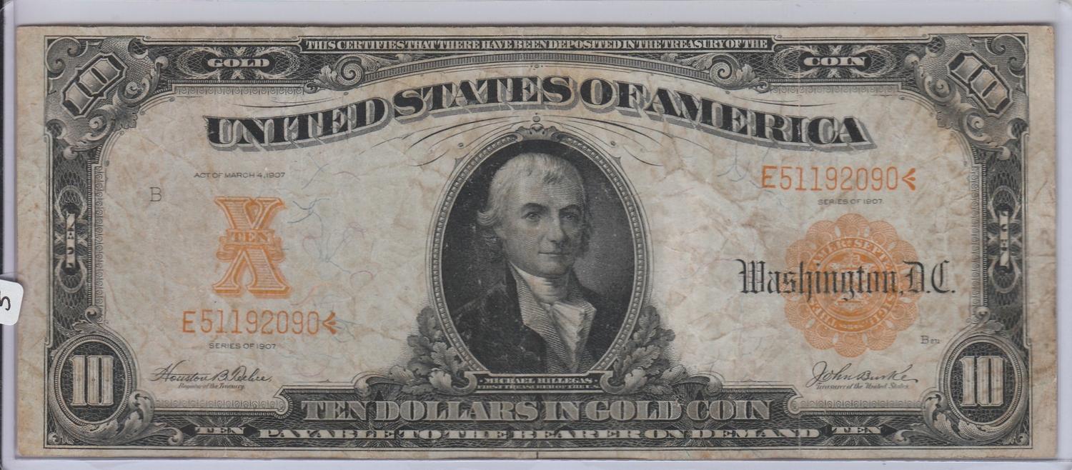 $10 GOLD CERTIFICATE 1907 TOUGHER DATE