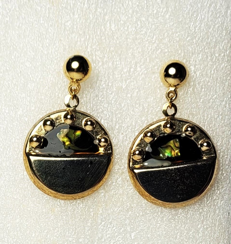 WITH NATURAL ABALONE INSETS ON GOLD TONE STUDS. JEWELERY