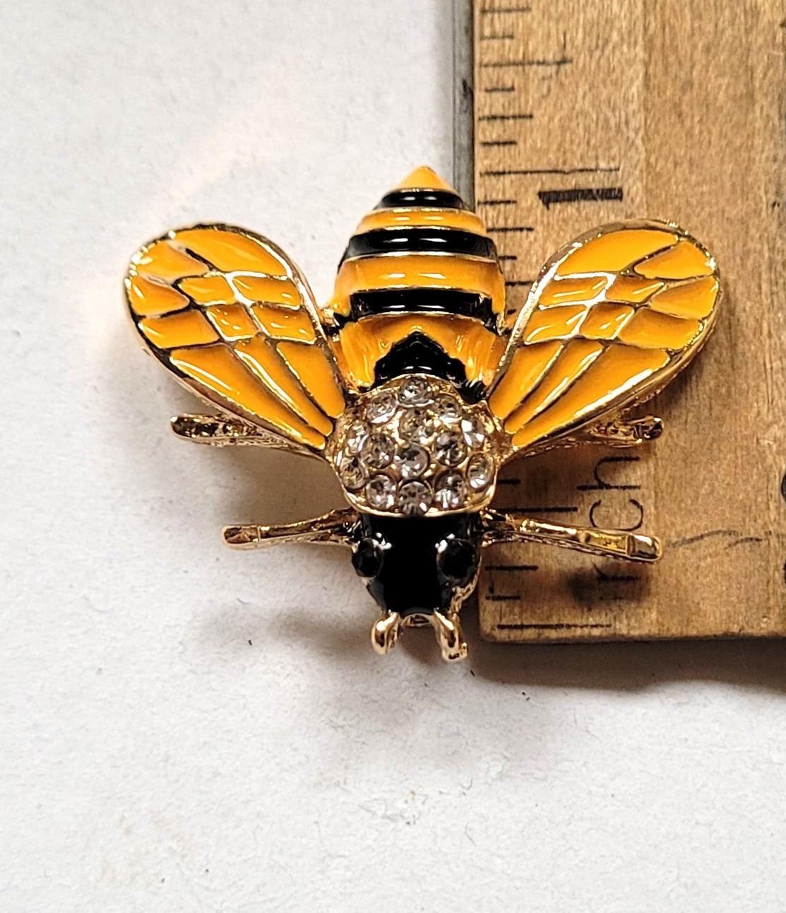 ENAMEL BEE BROOCH WITH CLEAR CRYSTAL ACCENTS. JEWELERY