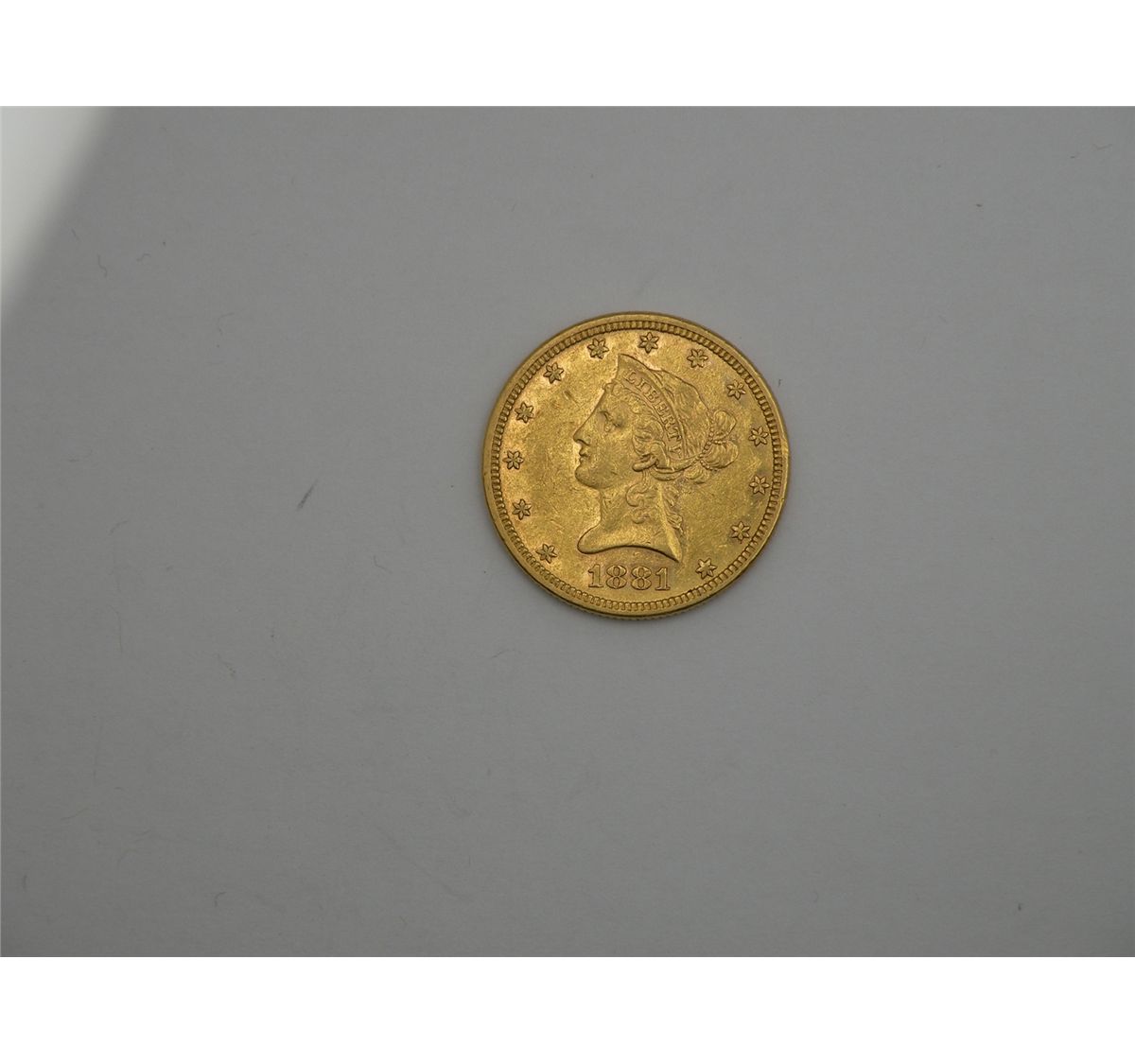 $10 Gold. 1881 Ext. Fine or better. A few light marks in the upper left obverse field. Est. $650