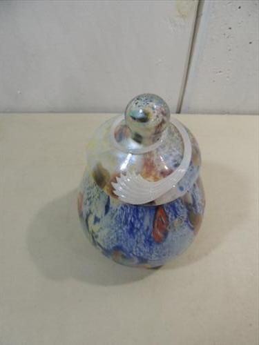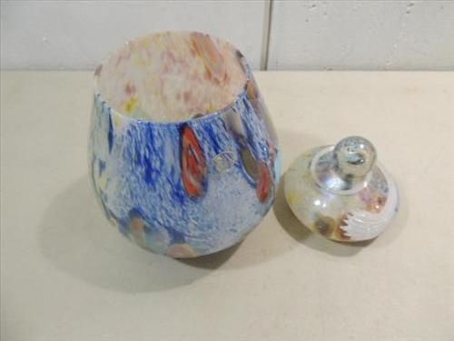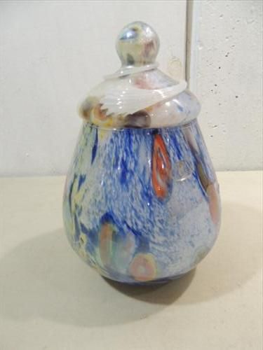 10"H ARTE MURANO ITALY SILVESTRI ART GLASS COVERED JARDINAIRE. HAS TAG ON JAR. AS SHOWN. VIEW PICTURE FOR DETAIL.