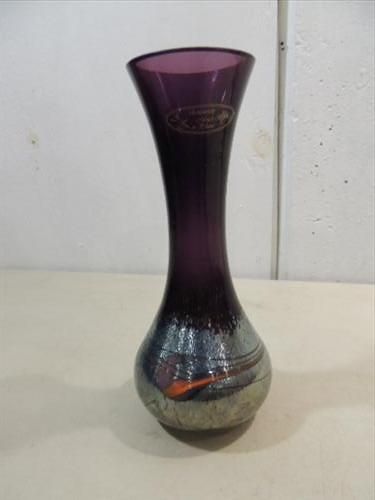 10"H MODERN STYLE HAND BLOWN IN POLAND AMETHYST ART GLASS VASE. AS SHOWN. VIEW PICTURE FOR DETAIL.