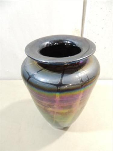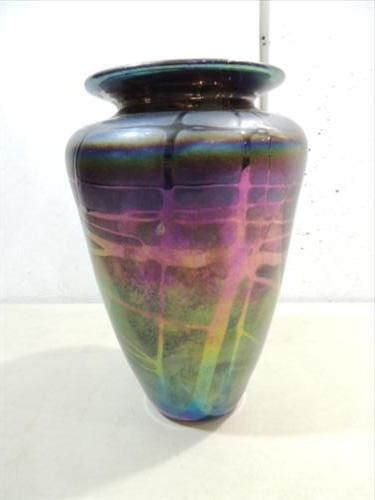 10"H MT ST HELENS IRIDESCENT ASH ART GLASS VASE. HAND BLOWN. AS SHOWN. VIEW PICTURE FOR DETAIL.