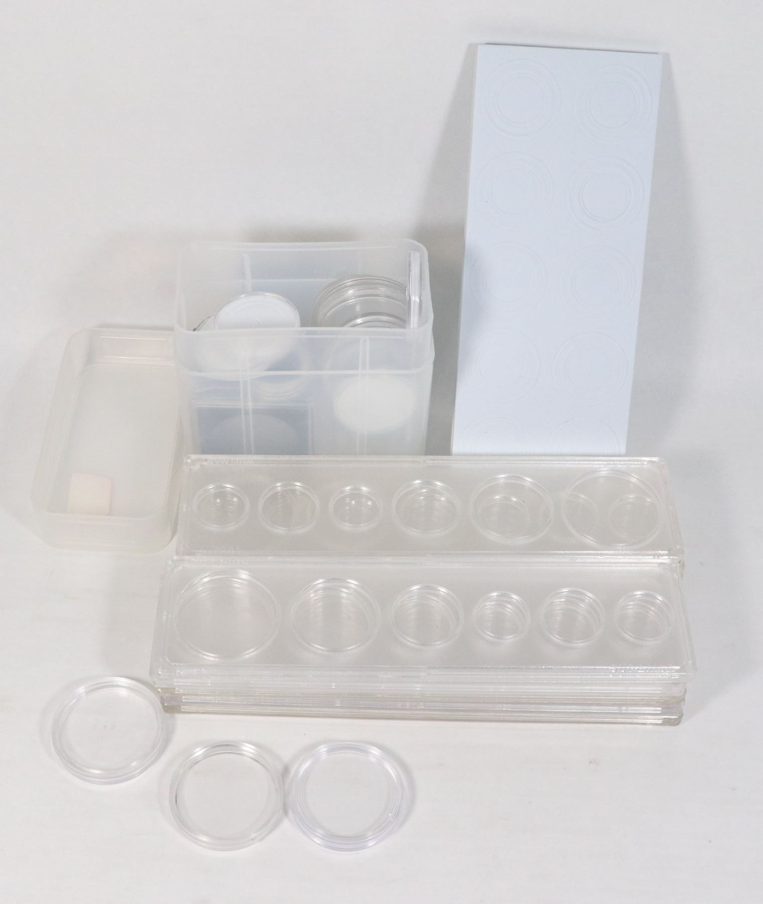 10 HARD PLASTIC YEAR SET HOLDERS, 20 SMALL COIN