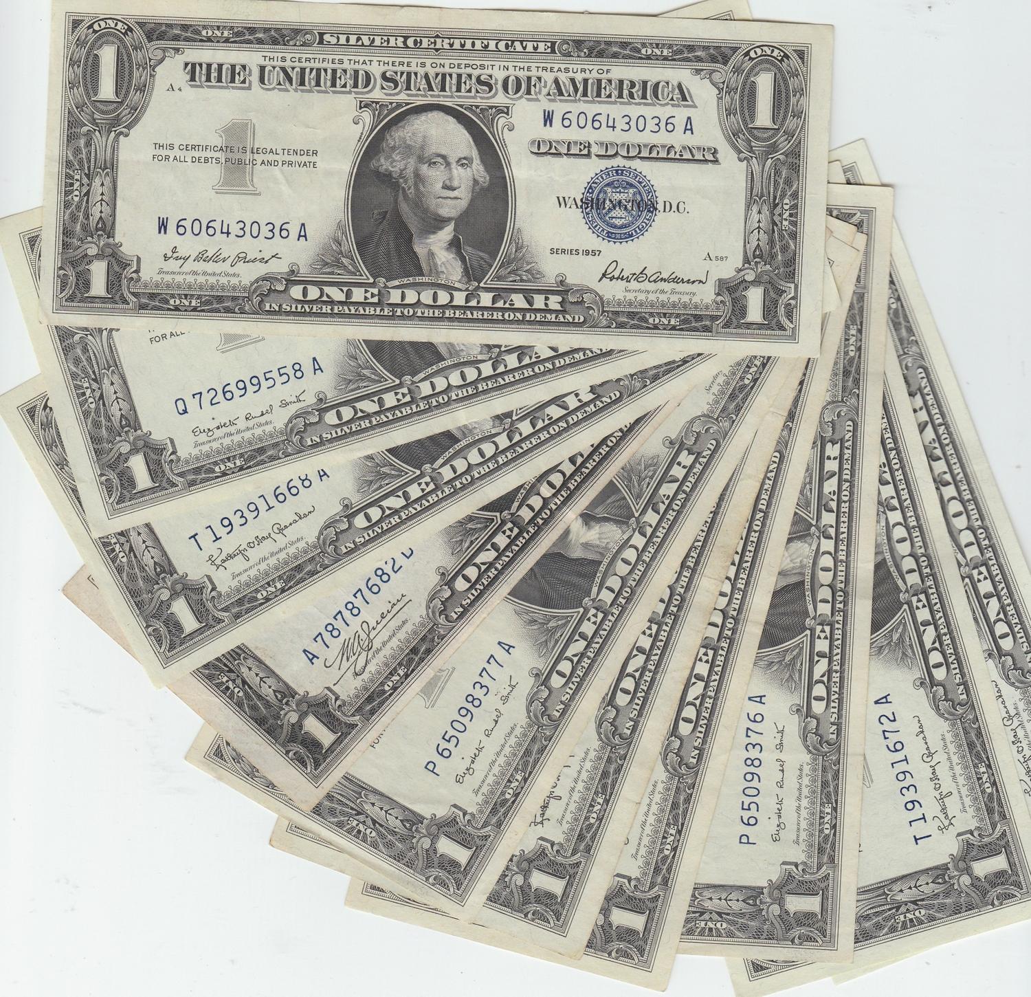 10 HIGH GRADE SILVER CERTIFICATES $1 1957 CRISP