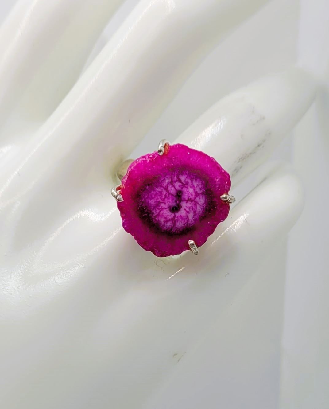 10) HOT PINK SOLAR QUARTZ RING SIZE 8, SETTING