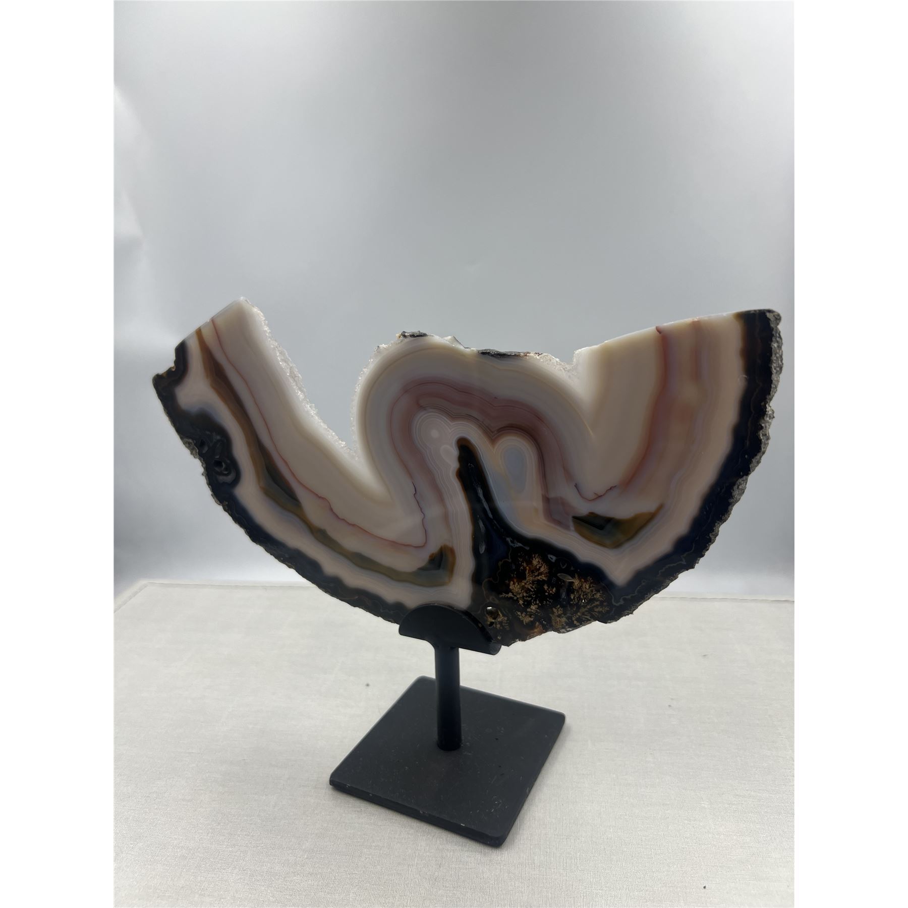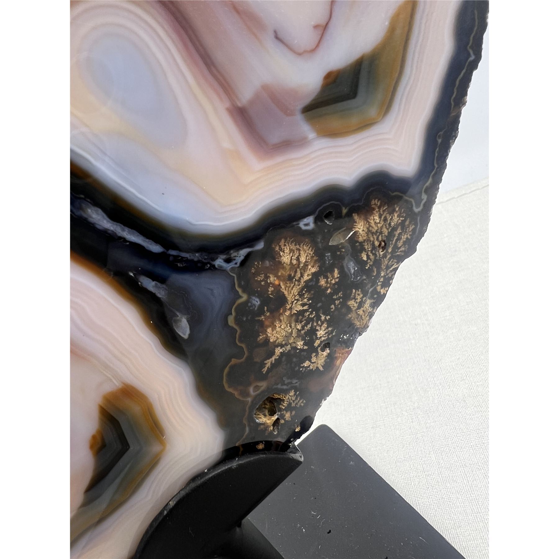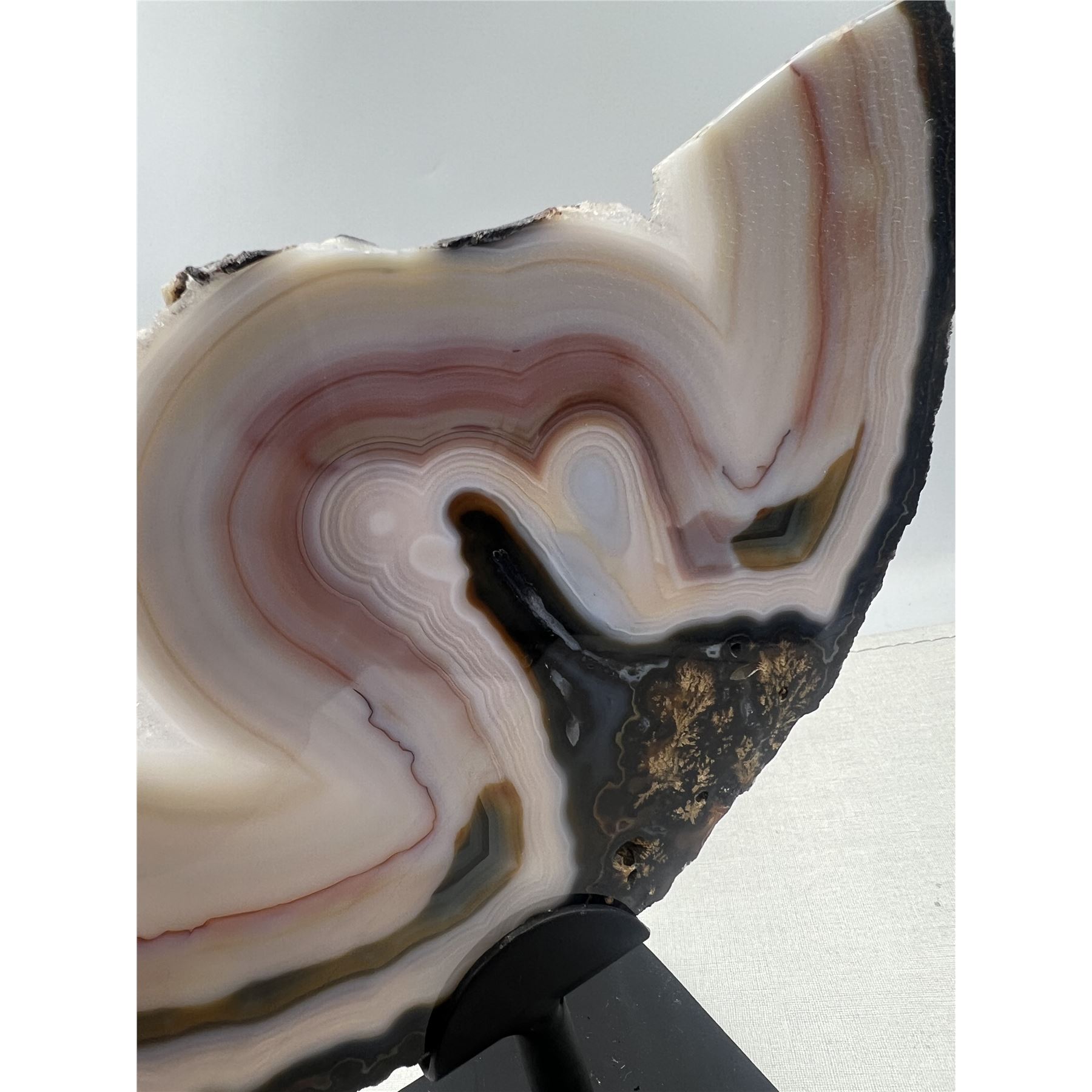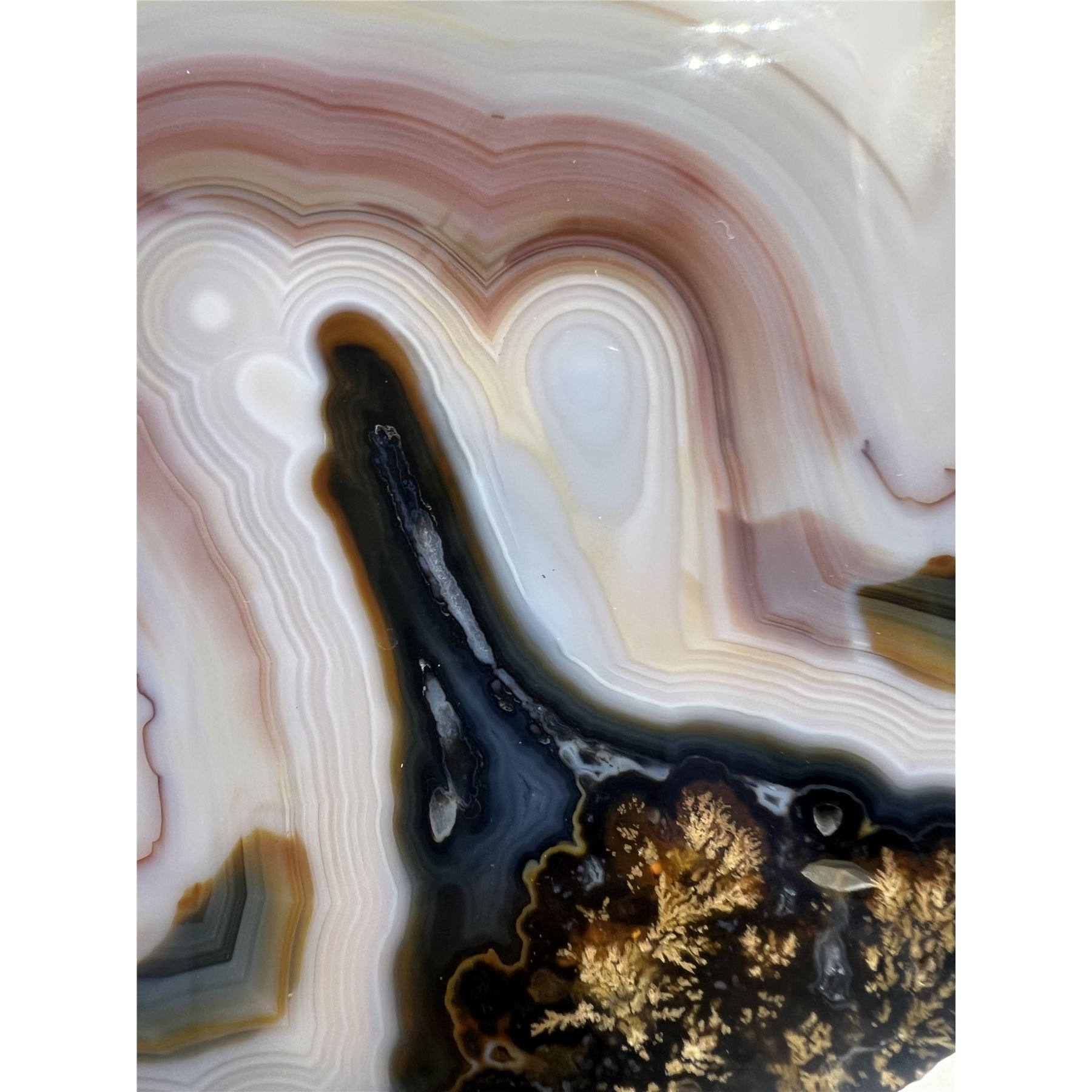 10 INCH PINK ,RED AND BLACK UNQUIE NATURAL FORMATION AGATE SLICE .