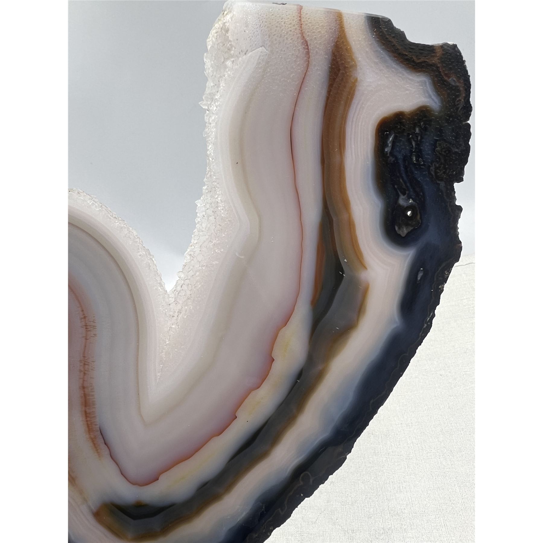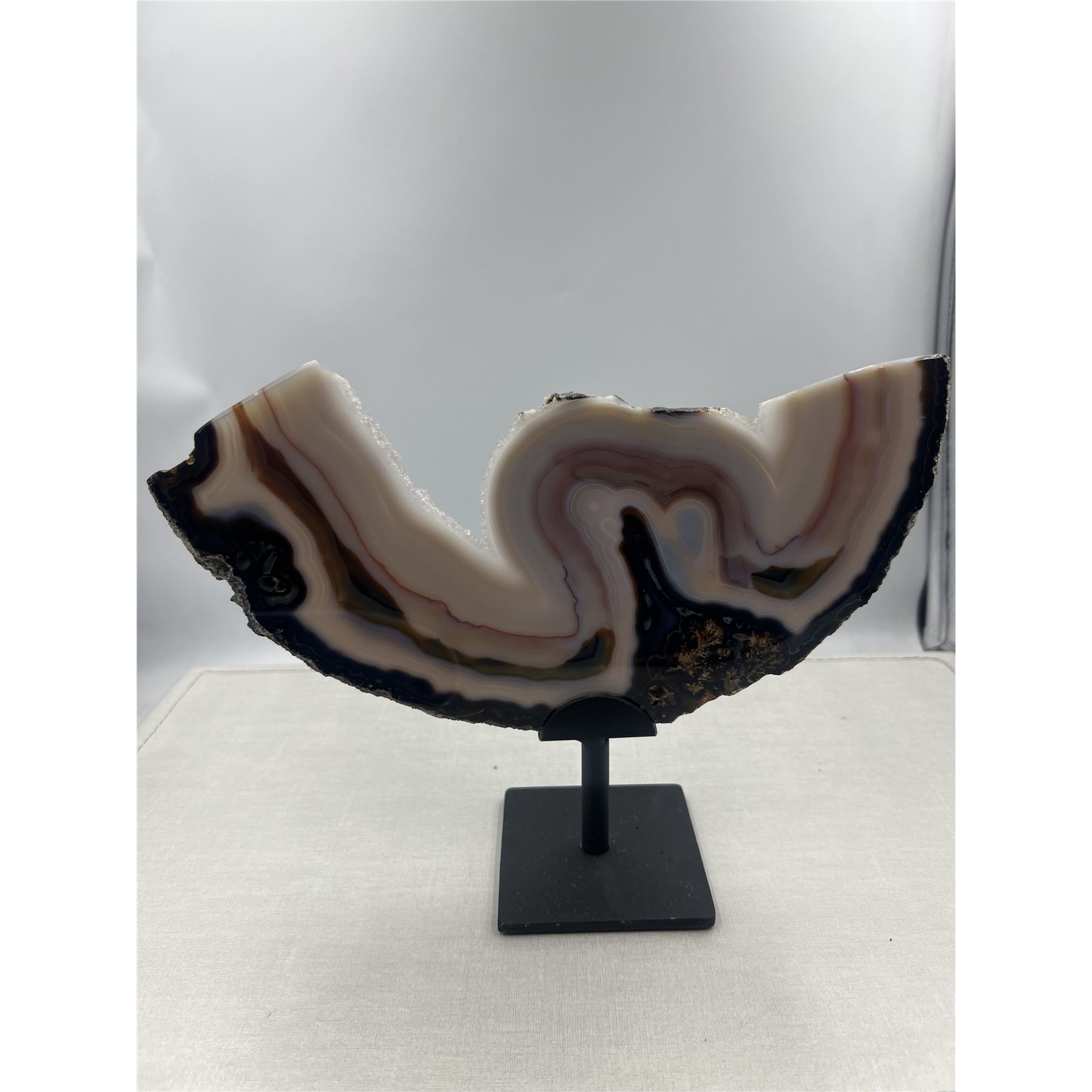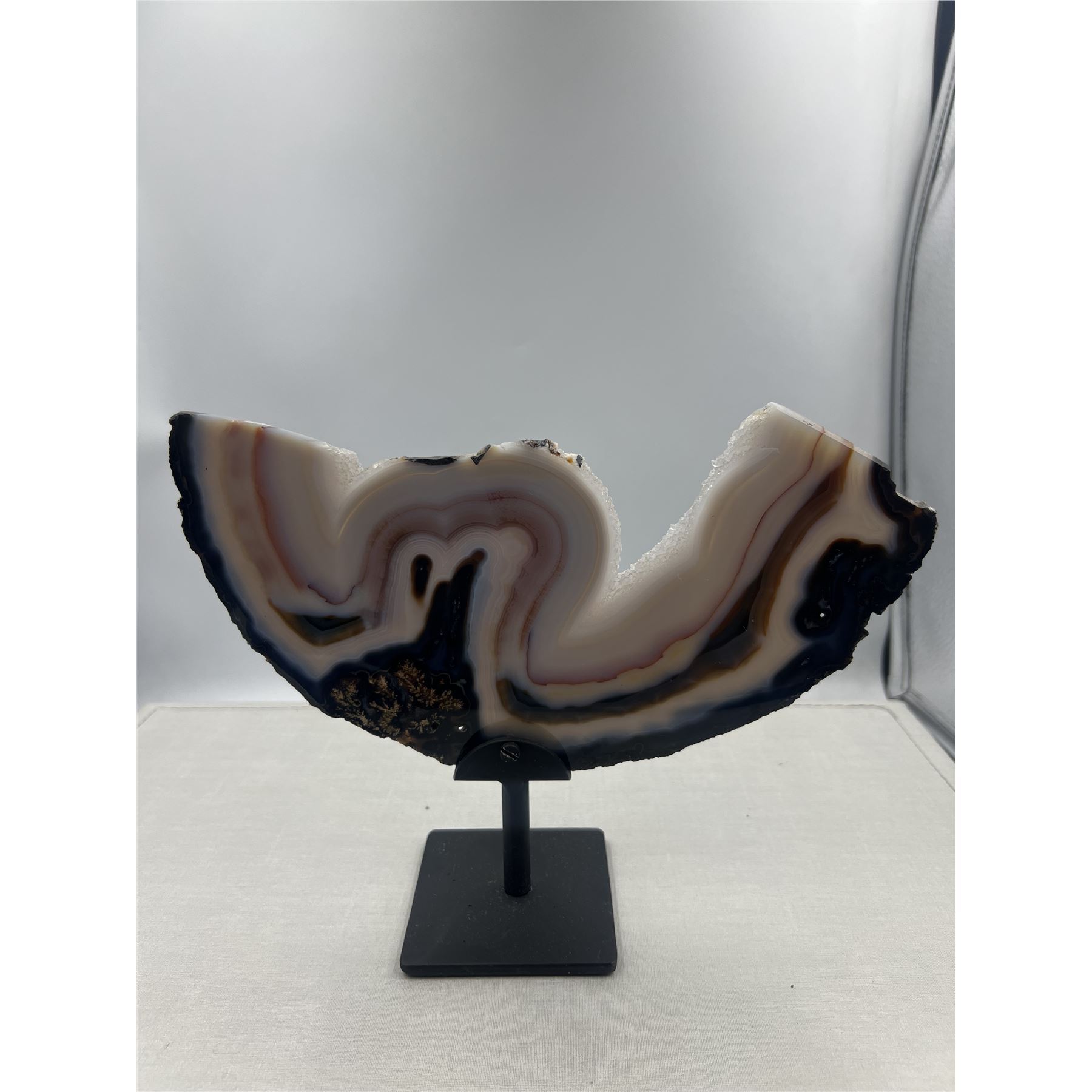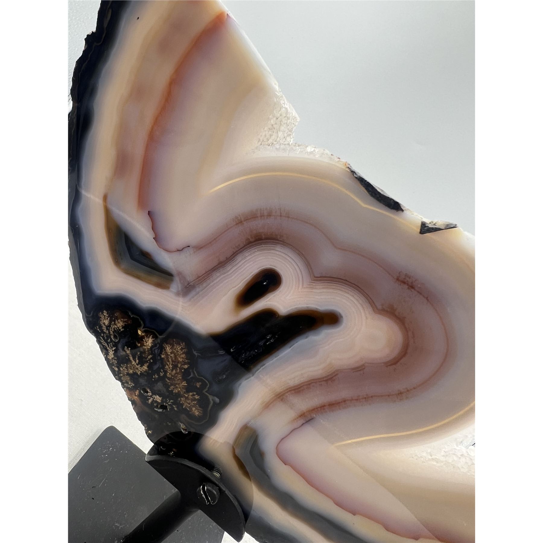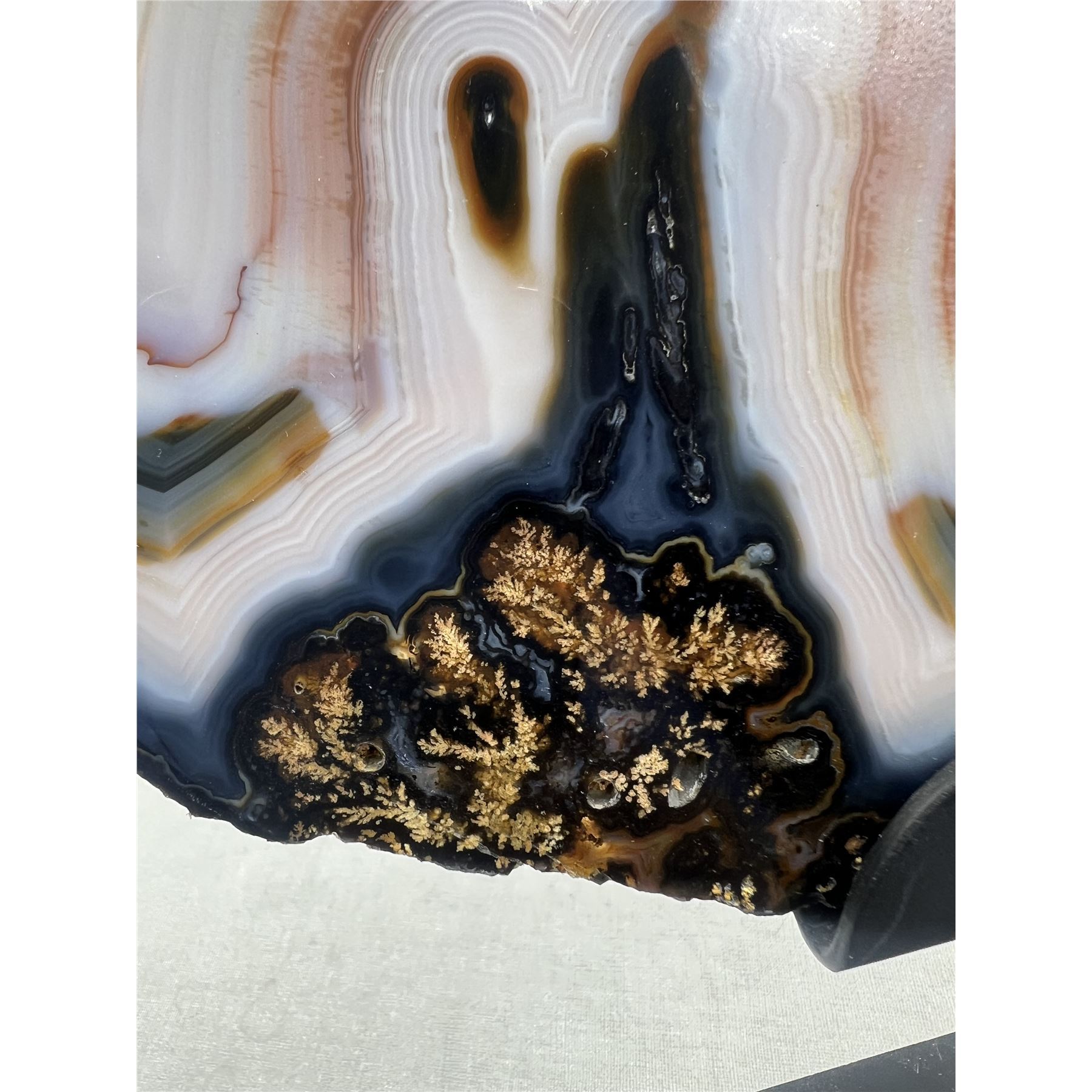 10 INCH PINK ,RED AND BLACK UNQUIE NATURAL FORMATION AGATE SLICE .