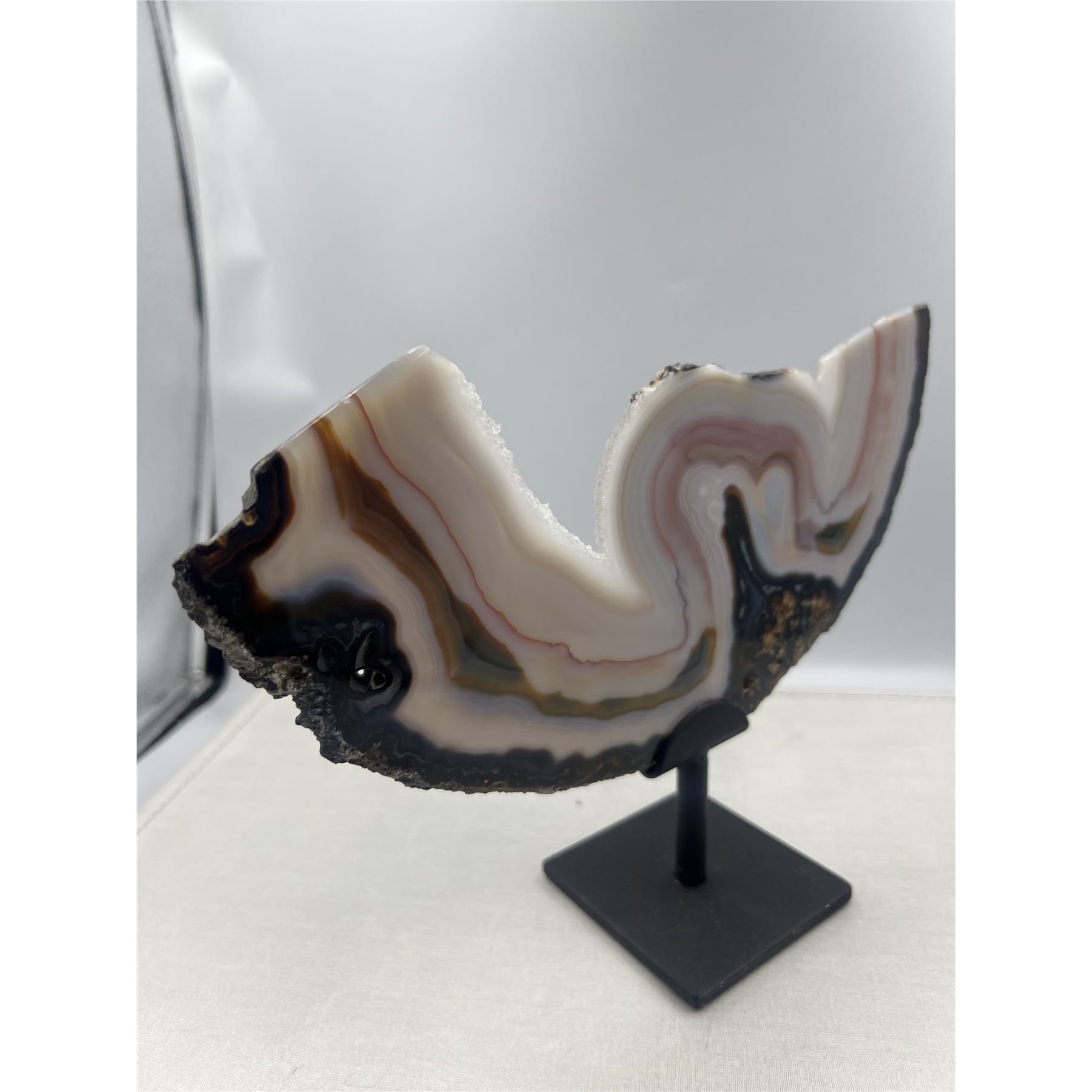 10 INCH PINK ,RED AND BLACK UNQUIE NATURAL FORMATION AGATE SLICE .