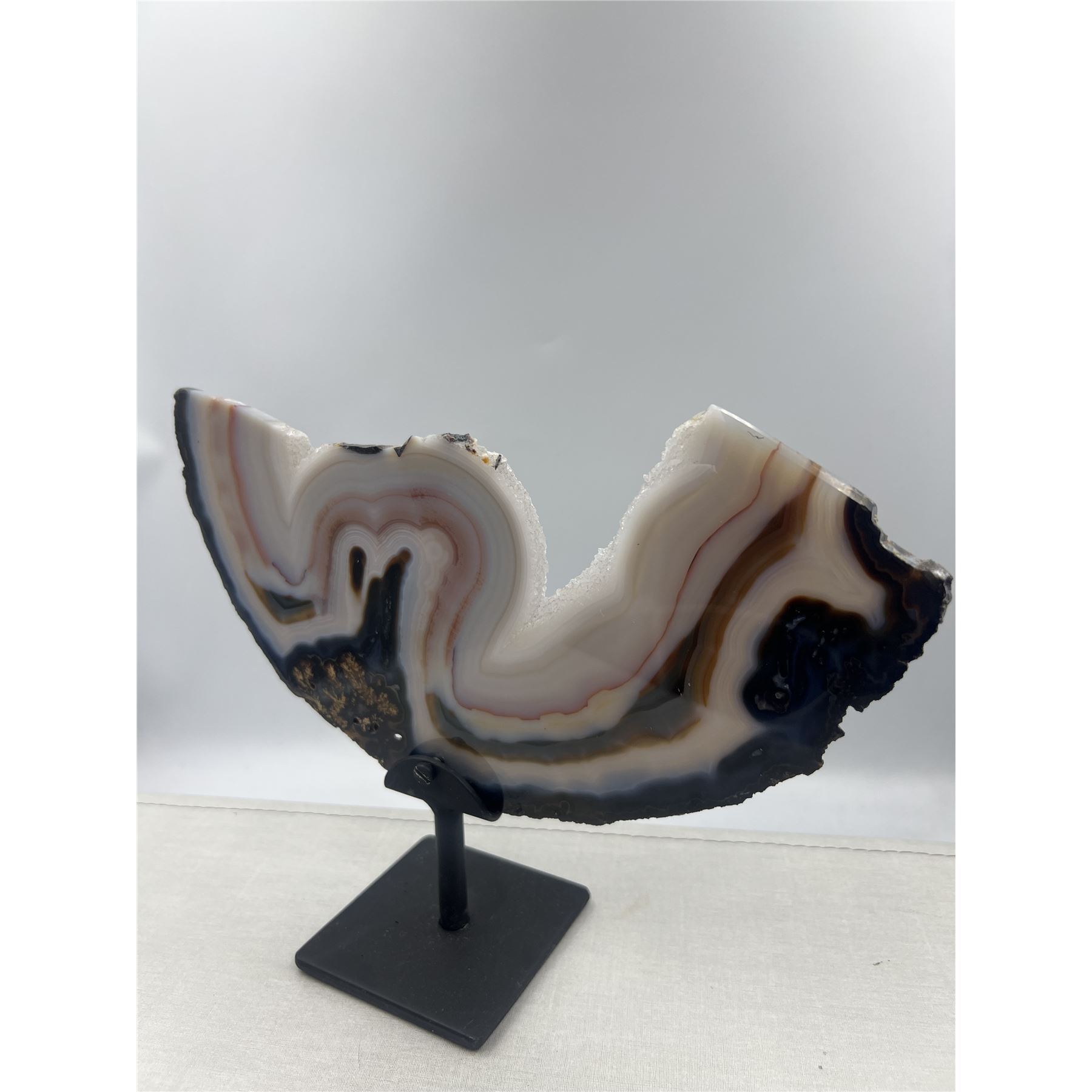10 INCH PINK ,RED AND BLACK UNQUIE NATURAL FORMATION AGATE SLICE .