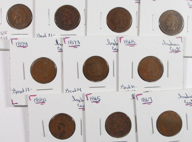 (10) INDIAN HEAD CENTS (1865, 1867, 1868, 1873, 1874, 1875, 1876, 1878, 1879,