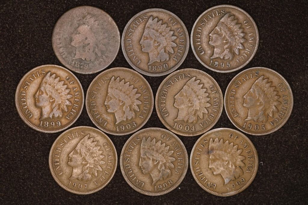 10 INDIAN HEAD CENTS: 1879, 1890, 1895 VF, 1899 FN