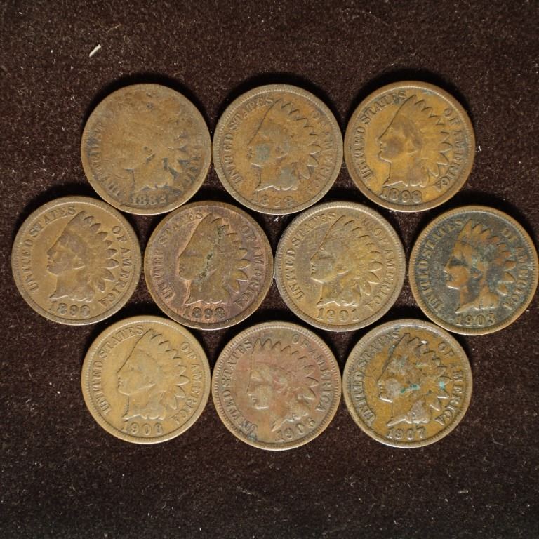 10-INDIAN HEAD CENTS: 1882, 1888, 3-1898, 1901,
