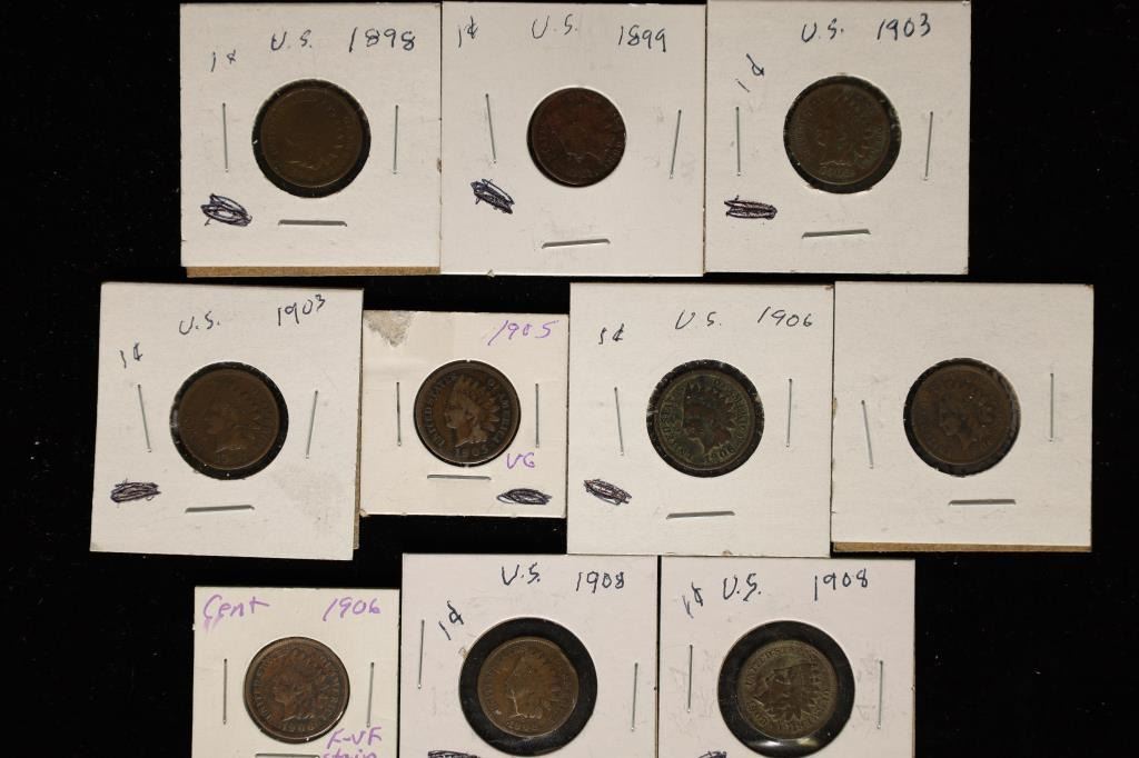 10 INDIAN HEAD CENTS: 1898, 1899, 2-1903, 1905,