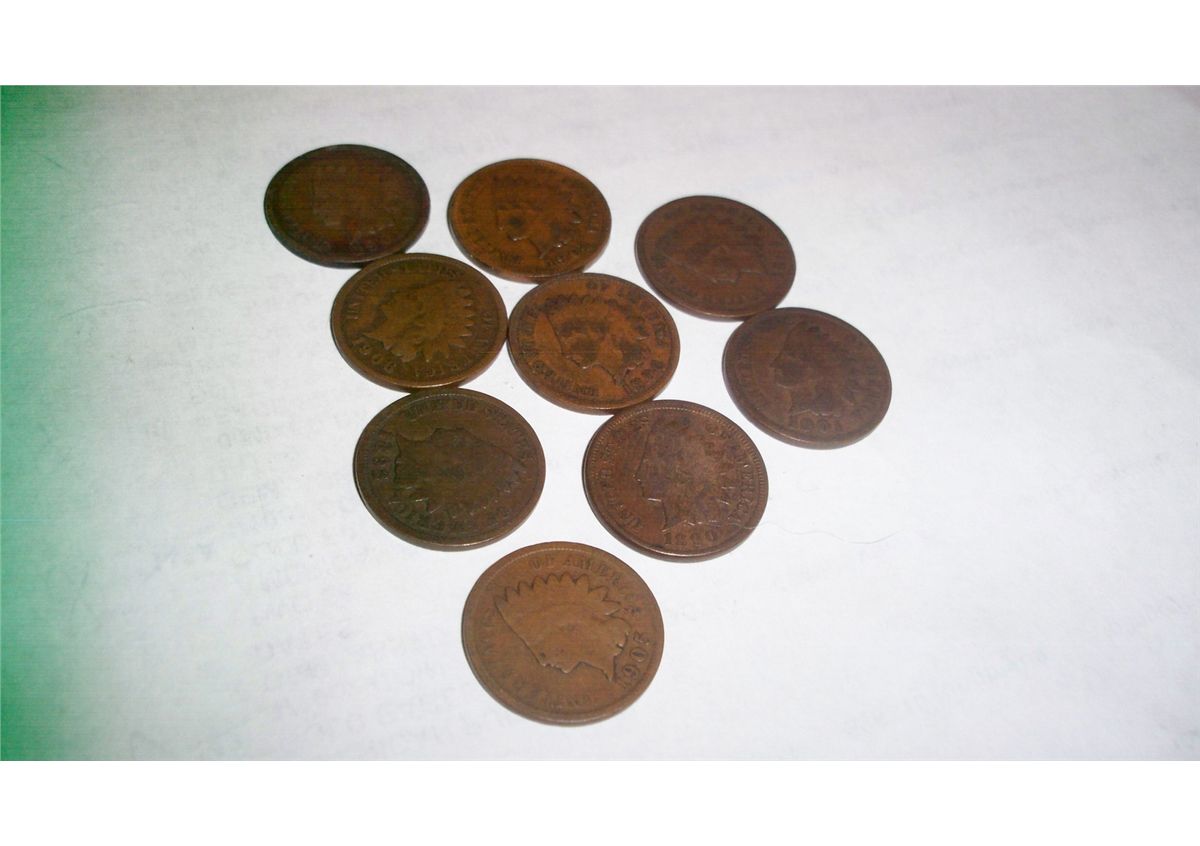 10 INDIAN HEAD PENNIES, 1890 AND UP