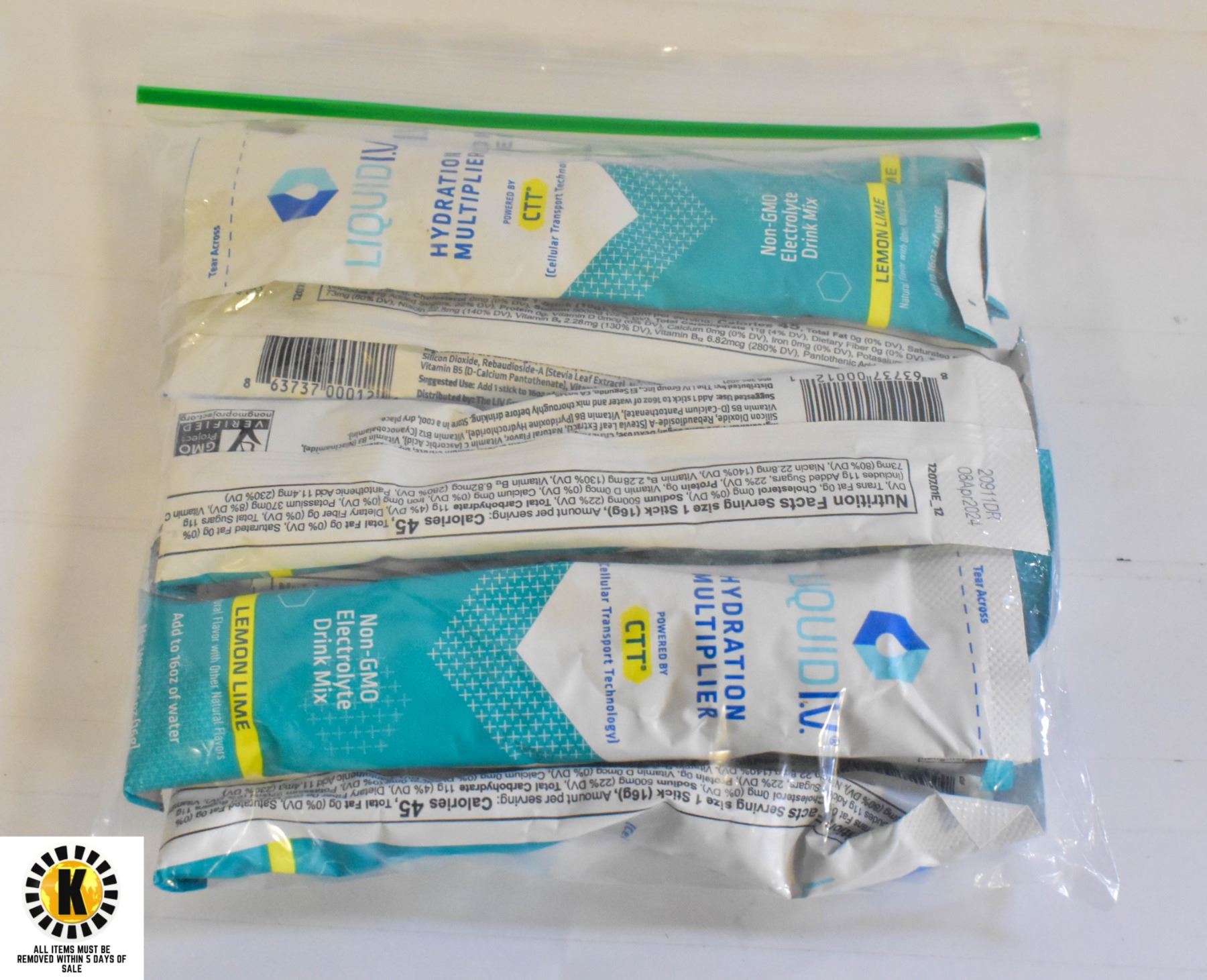 BY LIQUID IV; HYDRATION MULTIPLIERS. LEMON LIME FLAVOUR. EXPIRES 2024