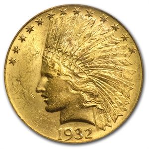 $10 Indian Gold Eagle - MS-62 PCGS **|**|** Year: 1907-1933 ; Mint Mark: MS-62 ; Grade: Varies ; Denomination: 10 ; MSRP: $1500